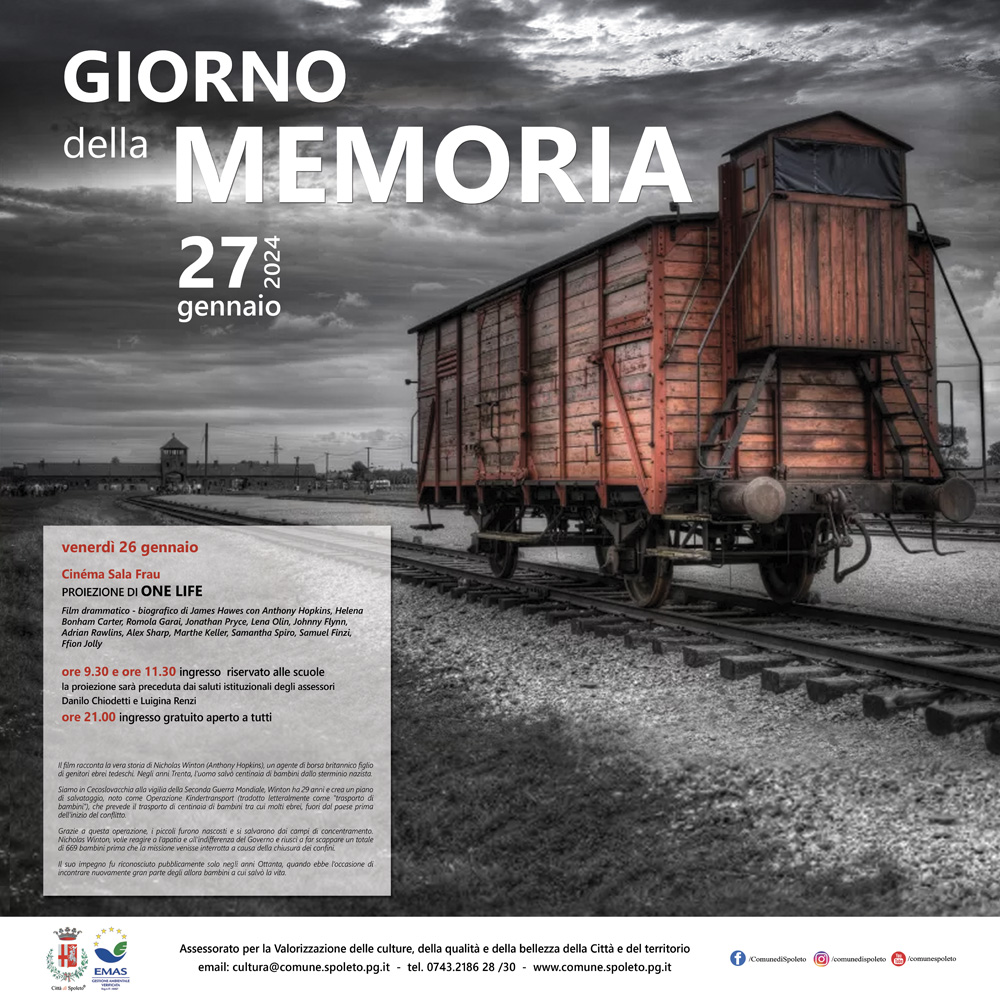 Saranno tre le proiezioni del film ‘One life’, tutte ad ingresso gratuito, organizzate al Cinema Sala Frau dal Comune di Spoleto per celebrare il Giorno delle Memoria.