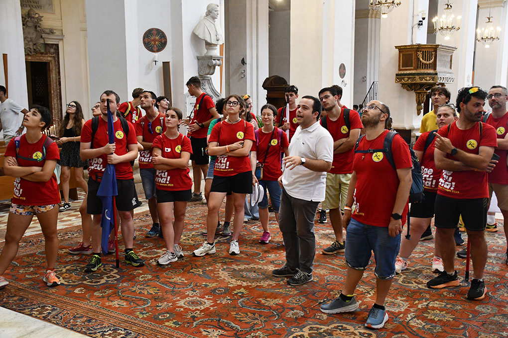 Accoglienza in Duomo. Nel pomeriggio di sabato 26 luglio 2025 c’è stata l’accoglienza dei 205 giovani piemontesi e francesi nella Basilica Cattedrale di Spoleto, dopo che nella giornata del 25 luglio hanno visitato Assisi (i francesi) e Cascia e Roccaporena (gli italiani). Ad attenderli in Duomo c’erano mons. Renato Boccardo arcivescovo di Spoleto-Norcia, Andrea Sisti sindaco di Spoleto, Antonella Fuga Paglialunga dirigente del Commissariato di Polizia di Spoleto e Stefania Fabiani dell’Ufficio di Protezione Civile di Spoleto. I giovani di Évreux sono accompagnati dal vescovo mons. Olivier de Cagny. Mons. Boccardo, in francese e in italiano, ha illustrato brevemente ai giovani le origini della fede a Spoleto e la storia della Cattedrale, soffermandosi particolarmente sulla vicenda di S. Ponziano, sulla Santissima Icone e sul crocifisso di Alberto Sotio. Il sindaco Sisti, al quale ha fatto da interprete l’Arcivescovo, ha dato ai giovani il benvenuto in Città dicendo loro: «Portate nel vostro cuore Spoleto». Il pomeriggio è trascorso con la visita, divisi in gruppi, delle bellezze di Spoleto. Domenica 27 luglio i giovani vivranno il pellegrinaggio giubilare verso la Cattedrale partendo dalla chiesa di S. Pietro extra moenia con l’attraversamento del Ponte delle Torri e alle 11.30 ci sarà la Messa presieduta da mons. Boccardo. Nel pomeriggio, poi, ritrovo di tutti i giovani accolti nelle diocesi dell’Umbria a Santa Maria degli Angeli di Assisi: visita alla Porziuncola, momento di preghiera e dopo cena ci sarà la festa regionale.