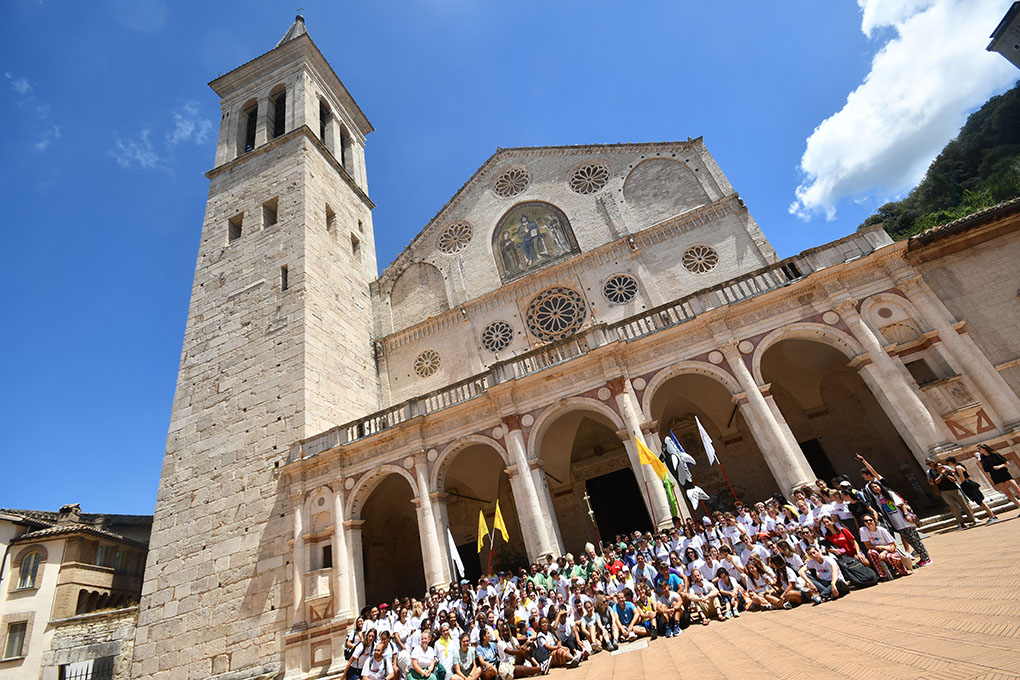 Prima della benedizione finale mons. Boccardo ha ringraziato il servizio diocesano di Pastorale giovanile e vocazionale: don Pier Luigi Morlino, suor Lorella Nucci, Francesco Giannoni, Asia Fornaci, Aurora Busti, Lorenzo Coccia e tutti gli altri animatori che in questi giorni hanno accompagnato i giovani ospiti alla scoperta delle radici cristiane di questa terra spoletana-nursina. Subito dopo i Vescovi, i sacerdoti e tutti i giovani si sono adunati in Piazza Duomo, con la cattedrale alle spalle, per una foto ricordo di questa esperienza.