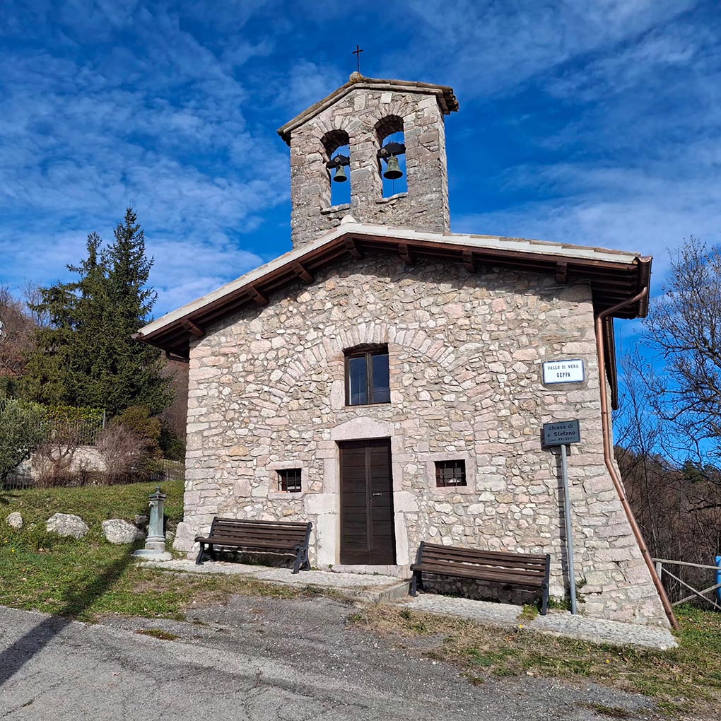 La chiesa di S. Stefano. Sul finire del XVI secolo il domenicano G. Battista Bracceschi passando per Geppa entrò in una cappella dedicata alla Madonna del Soccorso, l’attuale chiesa di S. Stefano, con al centro la consueta iconografia di natura apotropaica. Oltre all’immagine principale, Bracceschi notò ben trenta altre figure dipinte per voto, ognuna col nome del devoto-committente, quasi tutte datate 1512. Erano Madonne e altri Santi, su tutti Sebastiano e Rocco, un vero e proprio drappello contro la peste. Purtroppo, nel tempo, le pareti sono state ricoperte di cemento e nulla trapela delle decorazioni.