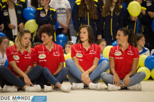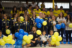 Spoleto – Non c’era una partita di cartello. Anzi, non c’era affatto una partita. Eppure ieri il Palarota era gremito in ogni ordine di posto, perché l’affetto che la città di Spoleto nutre nei confronti della Monini Marconi è grande e commuove. La presentazione ufficiale 2017-2018 è stato un successo oltre le più rosee aspettative. Dalle autorità ai semplici appassionati, dagli sponsor (con la famiglia Monini in testa) alla dirigenza della squadra, dai gruppi del minivolley fino ai campioni della Serie A2 maschile, lo spettacolo l’ha fatta da padrone, grazie anche allo show delle ragazze della polisportiva La Fenice che con alcune coreografie delle allieve più rappresentative e un balletto di gruppo finale a fortissime “tinte gialloblu” hanno infiammato il pubblico.