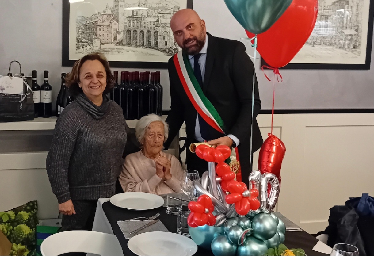 Avevamo lasciato la signora Olga De Santis, centenaria da qualche ora, nel 2021, in piena crisi Covid, qualche giorno prima che, con le sue gambe, si recasse a fare la prima dose di vaccino; ora sono passati cinque anni e una delle nonne di Spoleto può festeggiare alla grande e senza angosce le sue 105 primavere; veramente un numero che incute timore, se non altro riflettendo su quanta acqua è passata sotto i ponti e quante storie può raccontare la signora Olga. La sua famiglia ha voluto festeggiarla in un tipico ristorante di San Giovanni di Baiano, non lontano dalla sua abitazione sita in Marciano di Baiano. Anche l’amministrazione comunale ha voluto sottolineare la sua presenza in un momento così significativo, presenziando con il vice-sindaco Danilo Chiodetti e l’assessore Letizia Pesci (nella foto).
