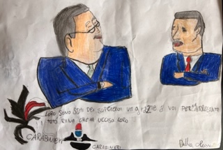 I bambini hanno consegnato ai militari un bellissimo disegno ove hanno riprodotto i volti di Falcone e Borsellino, icone di legalità, affidando ai Carabinieri il ruolo di “supereroi” per gli arresti compiuti quotidianamente a tutela di tutti.