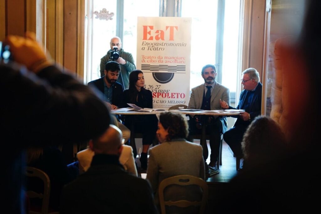 Vino e teatro. Nasce da un connubio insolito la prima edizione di “EaT – Enogastronomia a Teatro”, il nuovo format capace di legare cibo e spettacolo sulla scena del più antico teatro all’italiana della città di Spoleto, il Caio Melisso, in programma il 25, il 26 e il 27 novembre prossimi. Tre giorni di spettacoli, musica e degustazioni dedicati all’enogastronomia, dove il pubblico sarà coinvolto in maniera attiva: attori e spettatori si siederanno allo stesso tavolo e condivideranno cibo e musica.