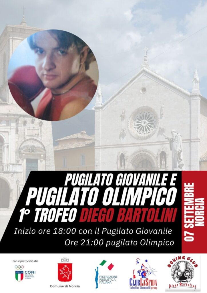 Il Boxing Club Diego Bartolini è lieto di annunciare la prima edizione del “Trofeo Diego Bartolini”, un evento di Pugilato Olimpico che si terrà sabato 7 settembre in Piazza San Benedetto, a Norcia. Questa manifestazione sportiva, intitolata in onore del compianto pugile nursino Diego Bartolini scomparso in un incidente stradale il 4 settembre 2005, vuole celebrare la passione e la dedizione di un atleta che ha lasciato un segno indelebile nella comunità e nel mondo della boxe.