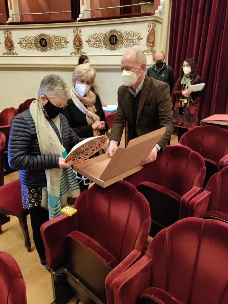 Con l’occasione i membri della Direzione artistica dello Sperimentale hanno omaggiato la Presidente della giuria di un Piatto commemorativo dei suoi 50 anni dal debutto al Teatro Lirico Sperimentale di Spoleto “A. Belli” avvenuto nel 1971 con il ruolo di Elvira ne “L’Italiana in Algeri”. Il piatto decorato a mano, raffigurante il rosone del Duomo di Spoleto, è stato realizzato dal celebre ceramista Maestro Lucio Sambuco.