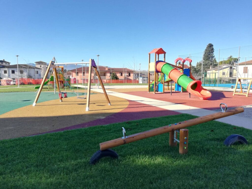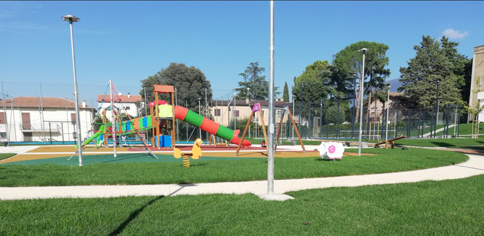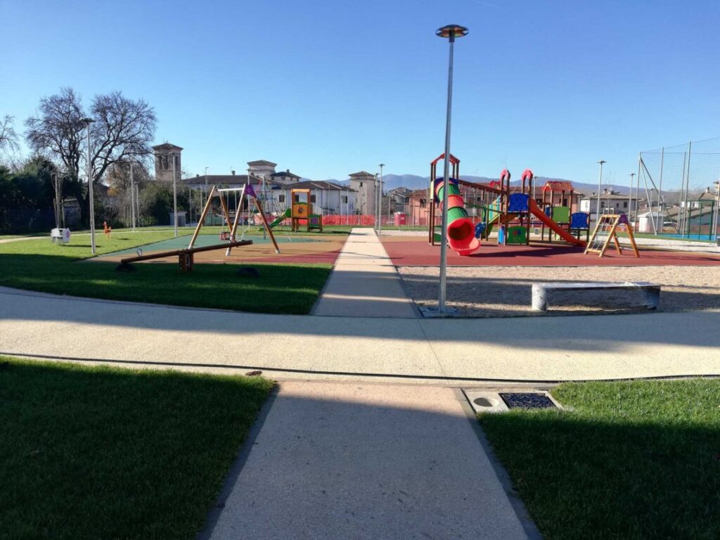 Il fine è stato quindi quello di migliorare l’accessibilità e la qualità degli spazi aperti pubblici, con una particolare attenzione alla sostenibilità ambientale attraverso scelte progettuali, l’utilizzo di materiali e l’impiego di tecnologie green. Per quanto riguarda l’area giochi per bambini, dedicata alle diverse fasce di età dei più piccoli, il progetto ha previsto ad esempio l’utilizzo di una specifica tipologia di materiali realizzati secondo i principi dell’economica circolare (CAM) e nel rispetto del Green Public Procurement (GGP).