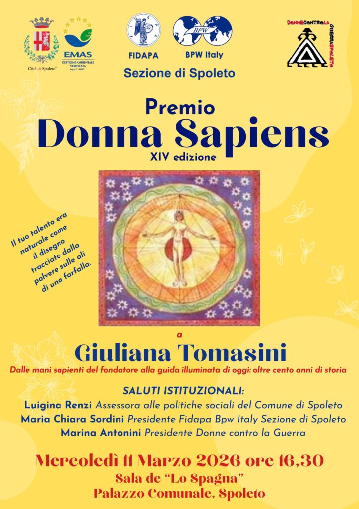Il primo, Premio Donna Sapiens 2026, realizzato in collaborazione con l’Associaione Donne Contro la Guerra, si terrà mercoledì 11 marzo alle 16.30 nella sala dello Spagna a Palazzo comunale.