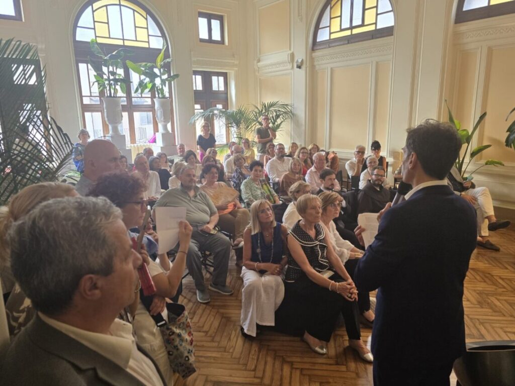 “Con grande piacere ho accolto l’invito della presidente di ‘Spoleto nel cuore’ Anna Maria Regoli e della vicepresidente Stefania Montori a prendere parte alla cerimonia di consegna della prima edizione del ‘Premio San Francesco’, che è stato assegnato all’artista Giovanni Gasparro, autore tra l’altro di una Pala d’altare che rappresenta lo spoletino don Giovanni Merlini, di recente proclamato Beato”. Così il consigliere regionale Stefano Lisci (Pd) dopo la partecipazione all’incontro “San Francesco – Arte e poesia” che si è svolto sabato 5 luglio nei locali di “Palazzo Due Mondi” e che è stato incentrato sulla lettera autografa di San Francesco d’Assisi custodita nel duomo di Spoleto.