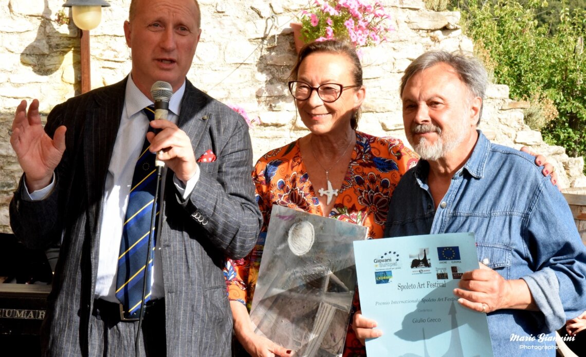 Uno dei premiati alla carriera, Giulio Greco ( in foto con Luca Filipponi e Poala Biadetti di Mario Giannini) sta preparando una grande mostra personale a Casa Menotti da metà agosto al 30 settembre che si prospetta come uno degli eventi clou del menotti art festival Spoleto 2024, già completamente sold out.