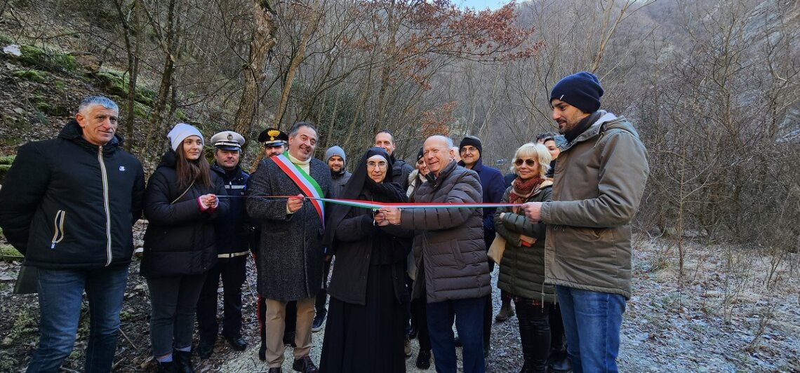 Oggetto della cerimonia, un segmento dell’antico percorso escursionistico, quello che va da Roccaporena ai resti del Molino di Santa Rita, nei pressi del quale secondo documenti storici Rita visse col marito e i figli prima di entrare in monastero. I lavori di ripristino e potenziamento sono stati finanziati dalla Regione Umbria, per la quale era presente all’evento l’assessore alle infrastrutture Enrico Melasecche, e attuati di concerto col Comune di Cascia, per il quale ha presenziato all’inaugurazione il sindaco Mario De Carolis, con l’amministrazione e molti cittadini.