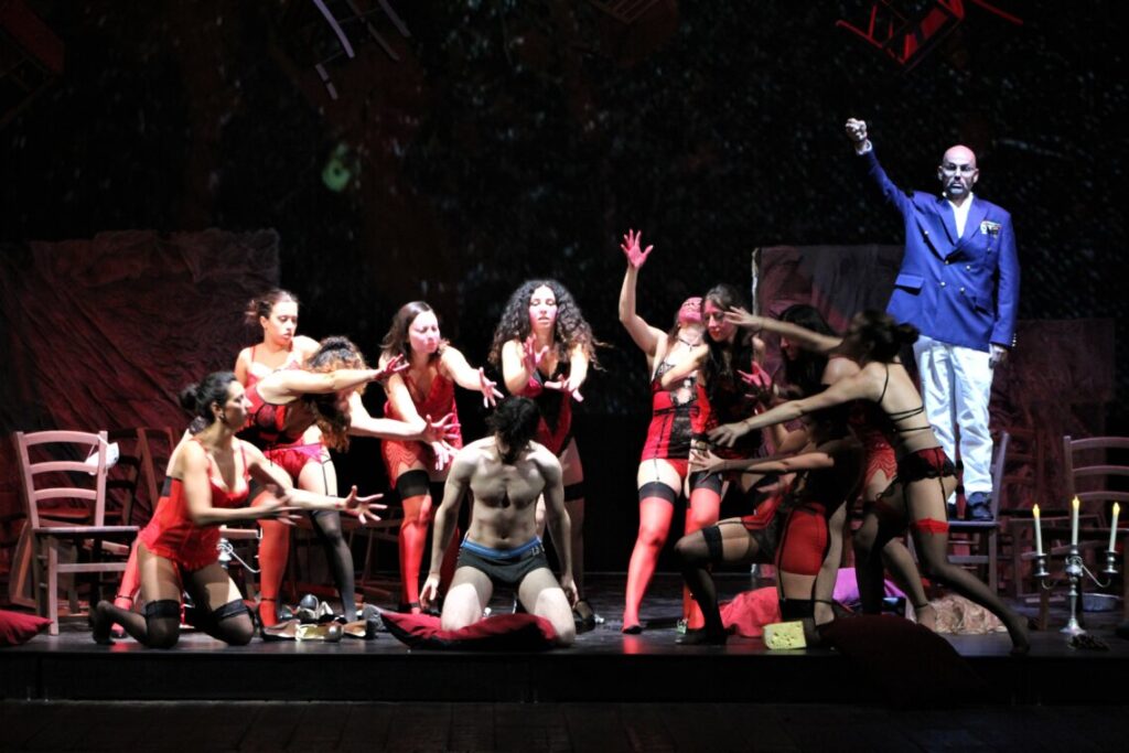 Don Giovanni, uno dei titoli più celebri della storia dell’opera, conosciuto e amato in tutto il mondo, ci parla di un libertino che affronta la propria vita con il solo obiettivo di godere dei piaceri terreni, insofferente a qualsiasi forma di compromesso. Una storia senza tempo, che si presta a molteplici livelli di lettura. Naturalmente, ciò si riflette a pieno sul piano musicale: «Don Giovanni è una fonte inesauribile di stimoli musicali. Un’opera pluristilistica dove turbamento e sorriso sono gli estremi di un grande contenitore all’interno del quale Mozart fa convivere le diverse realtà psicologiche dei vari personaggi» – le parole del direttore musicale Salvatore Percacciolo. La regia di questo allestimento è ad alto tasso erotico, poiché si propone di esaltare gli aspetti più carnali della vicenda di Don Giovanni: «per lui non esistono regole né sociali né morali ma solo ostacoli da superare», commenta il regista. «Incapace di affezionarsi a qualcuno, continua ad andare avanti. Non si tratta che di lasciarsi andare a capofitto alla gioia di vivere».