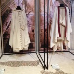 I tessuti e le bordure sono stati realizzati infatti nella Casa di Reclusione di Spoleto dai detenuti del corso di tessitura, con i telai dell’IIS Sansi Leonardi Volta, dopo uno straordinario lavoro di studio e ricostruzione di trame e orditi desunte dalle scoperte archeologiche. La composizione dell’abito maschile e femminile è stata realizzata con attenti confronti iconografici uniti alle poche fonti letterarie (Historia Langobardorum di Paolo Diacono), il risultato è un’accurata proposta delle antiche tecniche di tessitura e di taglio e cucito dell’abito altomedievale. Sono rappresentati i diversi ceti sociali completati da accessori realizzati dai detenuti del Liceo Artistico ristretto. Il visitatore condotto da icone equine e lance tra reperti dei secoli dal IV all’VIII incontra i protagonisti di trame longobarde davanti a grandi fondali fotografici della basilica di San Salvatore, di cui può ammirare i dettagli e i particolari decorativi, per contemplare infine la composizione dei Duchi di fronte al presbiterio della basilica patrimonio della città e dell’Umanità.