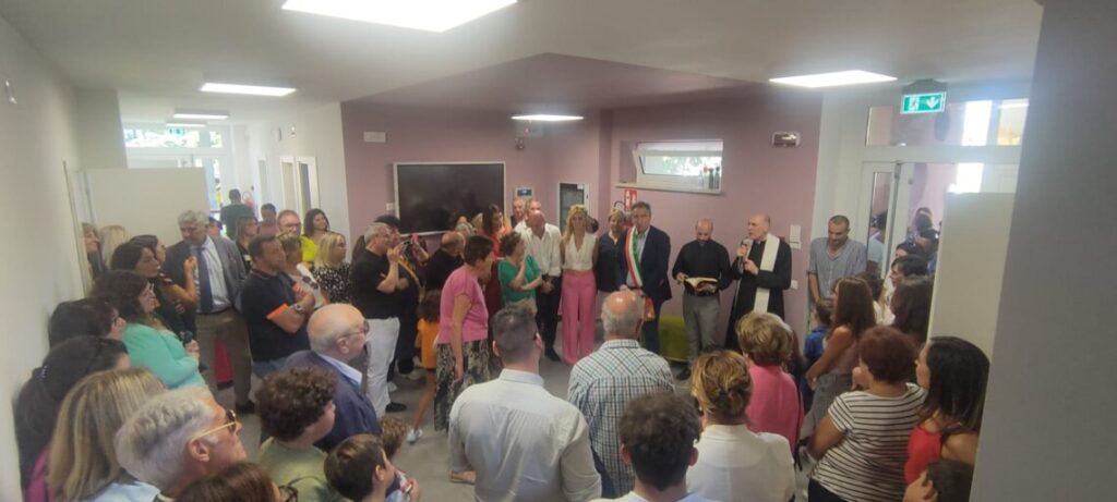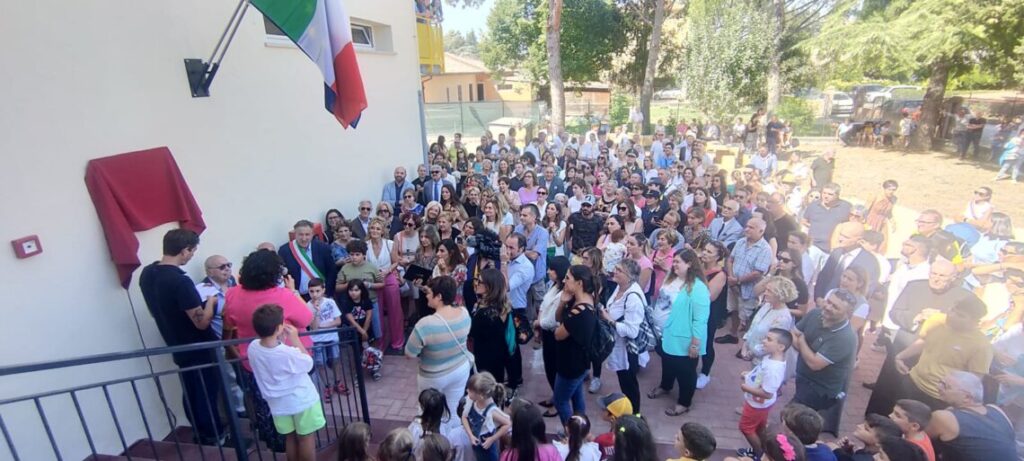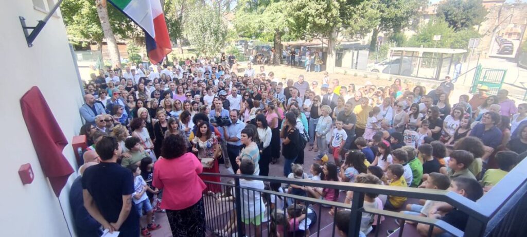 Genitori e alunni, nonni, nonne e maestre presenti all’inaugurazione. La scuola è stata intitolata alla Maestra Patrizia Badiali:“Amava profondamente la scuola, doveva educare ed essere punto di riferimento”