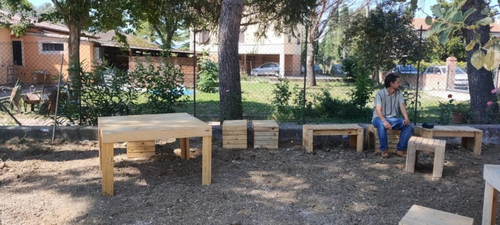 All’esterno della scuola sono presenti i tavoli e le panchine realizzate, durante il Festival dei Due Mondi e grazie alla collaborazione di Fercam, Sustainability Partner del Festival, dai genitori e dagli alunni della scuola di Beroide con materiale di recupero.