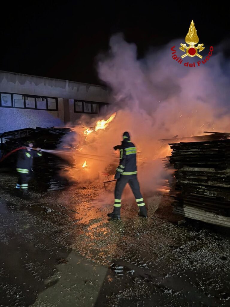 Le fiamme hanno interessato numerose cataste di tavole accatastate all’esterno dell’attività produttiva, che sono andate completamente distrutte. Fortunatamente il materiale si trovava in un’area di terreno ampia, destinata alle operazioni di manovra e allo stoccaggio esterno, circostanza che ha consentito ai soccorritori di operare in sicurezza e di evitare il coinvolgimento delle strutture principali.