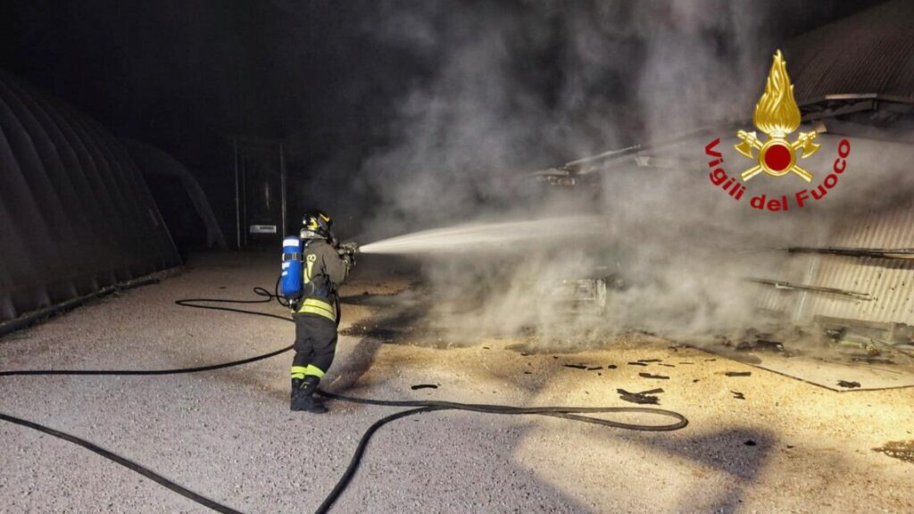 Le fiamme hanno coinvolto un’autovettura, alcune attrezzature agricole e parte di un capannone adibito a rimessa. L’intervento dei vigili del fuoco ha permesso di contenere l’incendio, evitando che si propagasse all’intera struttura.