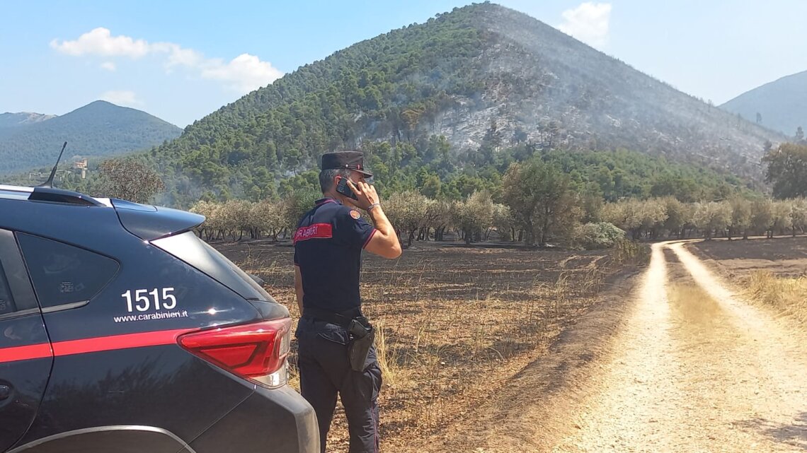 Dalla macchina operatrice si ipotizza siano partite delle scintille facendo innescare l’incendio su campi incolti e oliveti fino ad interessare l’area boschiva.
