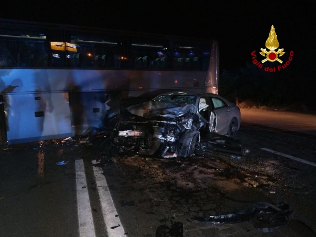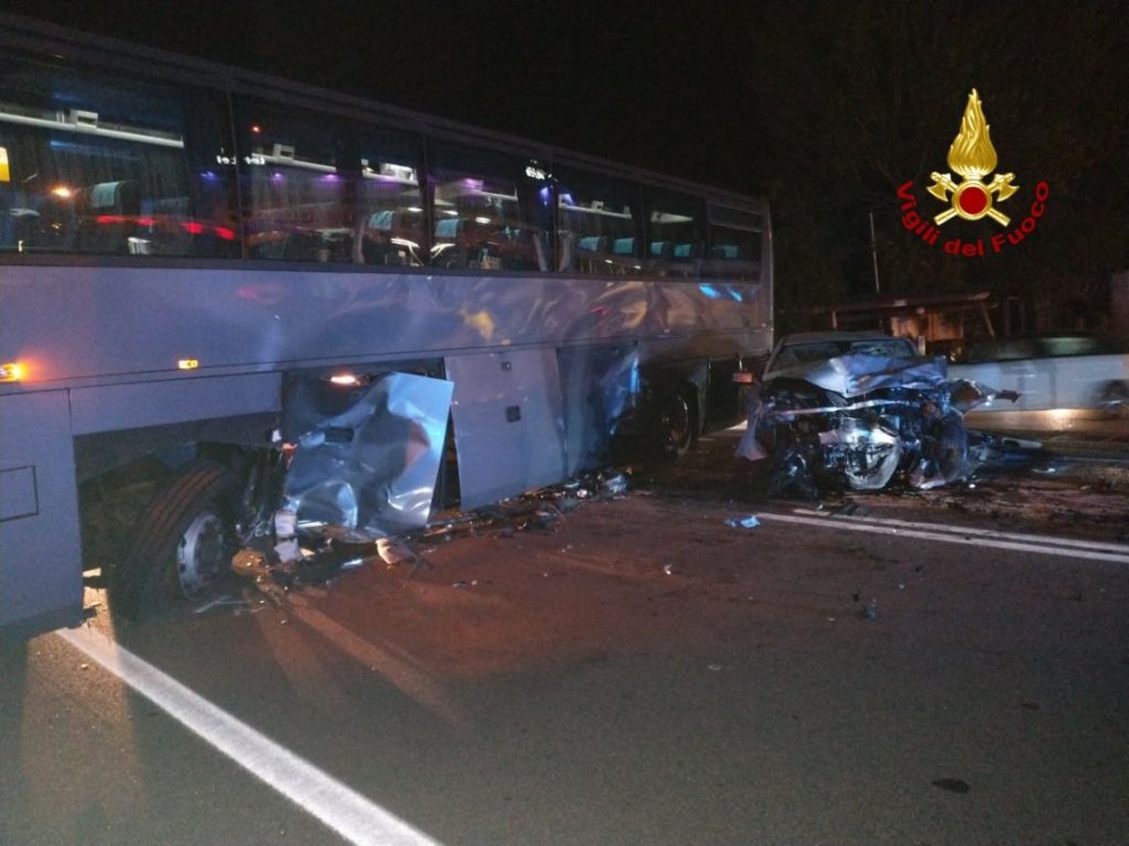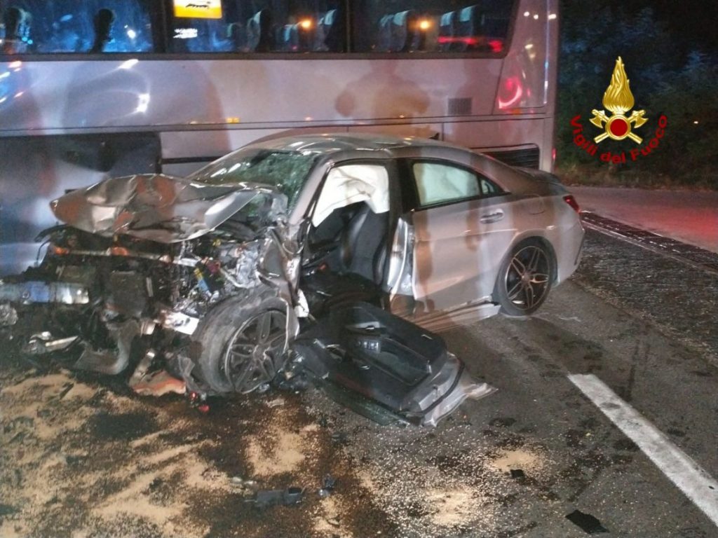 (DMN) Spoleto – un grave incidente stradale si è verificato nella tarda serata di ieri, domenica 1 agosto sulla statale Flaminia, poco dopo lo svincolo di Spoleto Nord, in direzione Foligno, all’altezza dell’hotel Arca. Per cause ancora da verificare, sono entrati in collisione un pullman ed una vettura. Da quanto comunicato dai Vigili del Fuoco di Spoleto, intervenuti sul posto, dalla vettura sono stati estratti due feriti trasportati in ospedale “in codice rosso” che non sarebbero in pericolo di vita. Non si hanno ancora notizie sulle condizioni dei passeggeri del pullman. Sul posto, oltre ai sanitari del 118, le Forze dell’Ordine e la squadra del Distaccamento dei Vigili del Fuoco di Spoleto, é intervenuta anche una squadra di pompieri di Perugia con una gru per rimuovere l’autobus dalla sede stradale e ripristinare la normale circolazione sulla statale.
