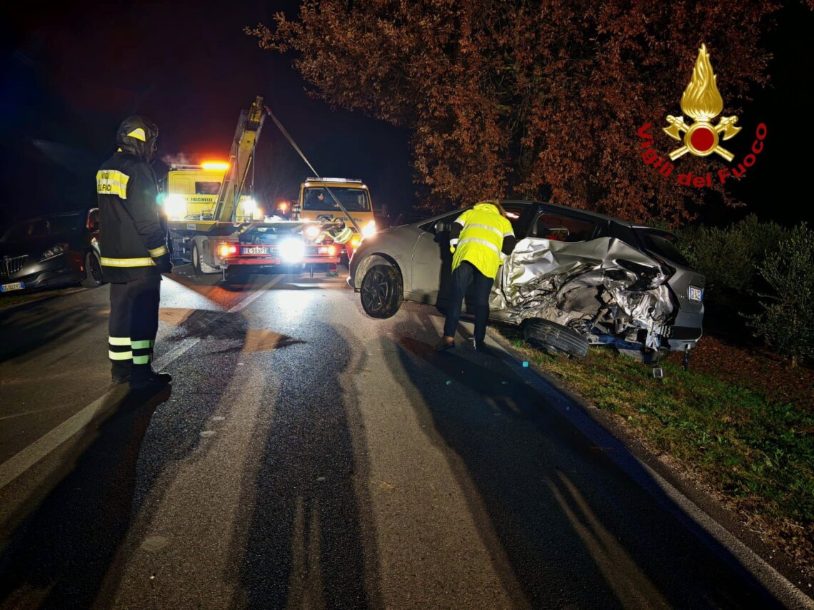 (DMN) Spoleto – Intervento dei Vigili del fuoco del Distaccamento di Spoleto nel tardo pomeriggio di lunedì 8 dicembre, intorno alle 18:00, per un incidente stradale avvenuto lungo la strada che da Campello sul Clitunno conduce ad Azzano, nel territorio comunale di Spoleto.