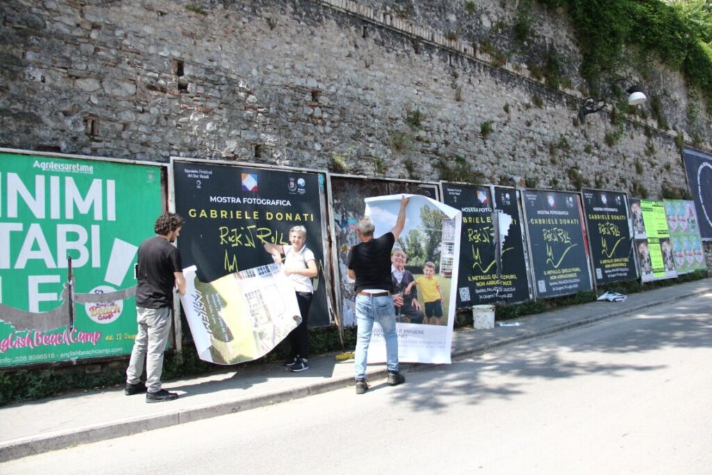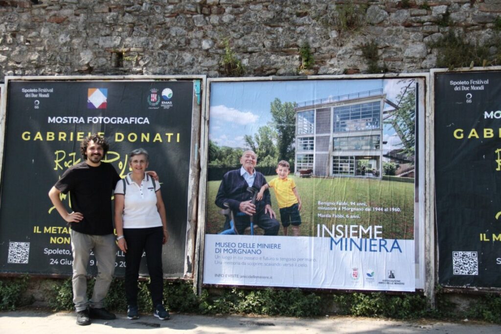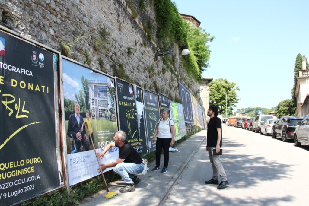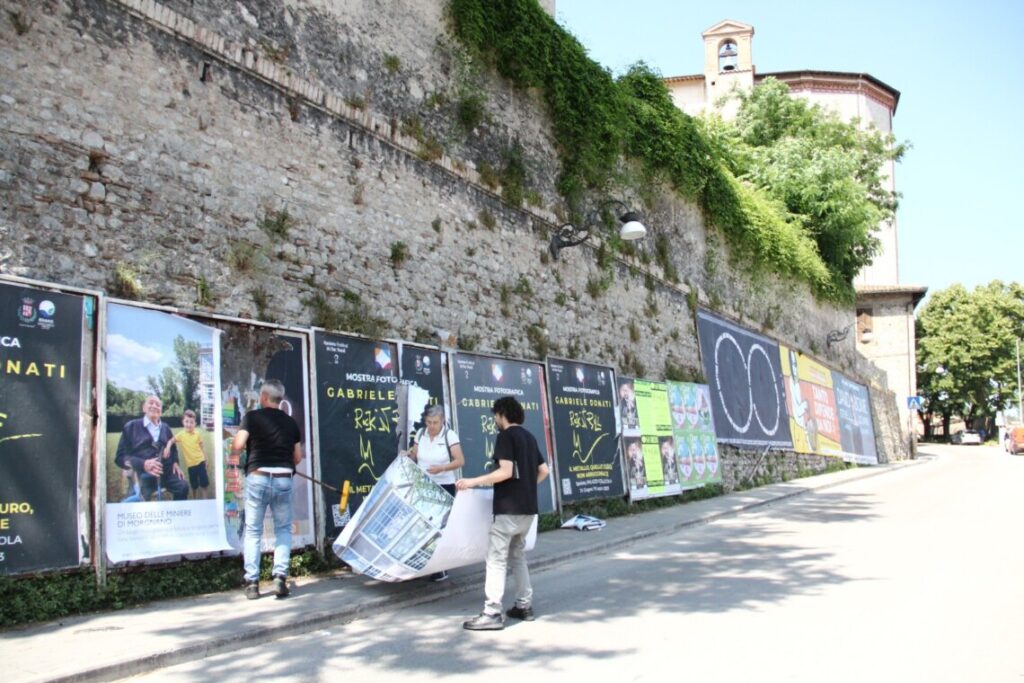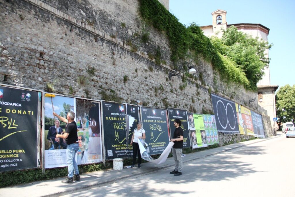 Ieri mattina il direttore dei Musei comunali, Saverio Verini e la presidente dell’associazione Amici delle Miniere, Vincenza Campagnani hanno partecipato insieme all’affissione di uno dei manifesti in via Cecili.