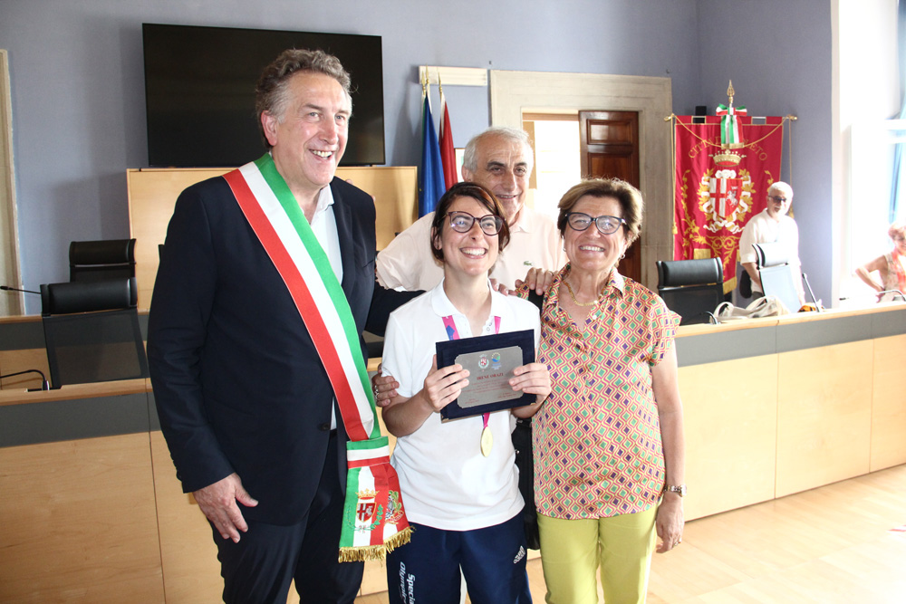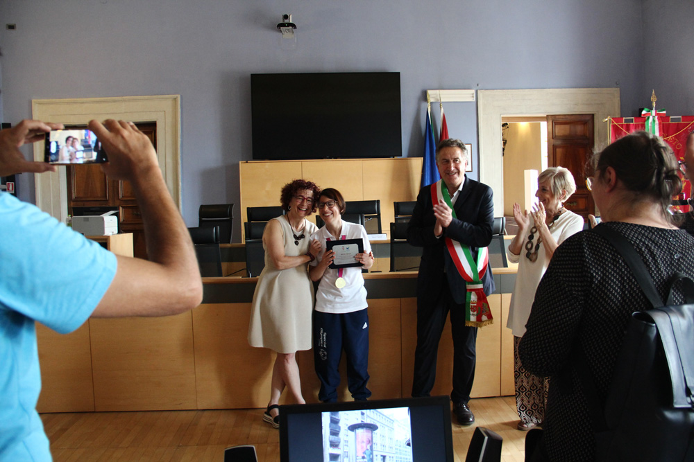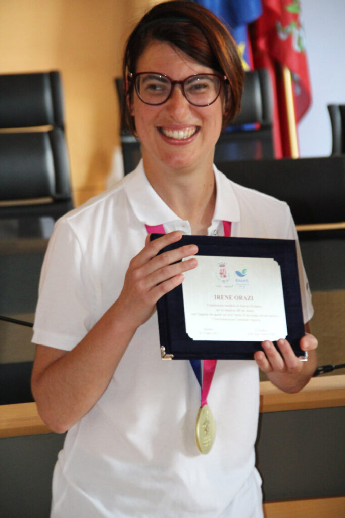 Soddisfatto anche il sindaco Andrea Sisti, che a caldo aveva sottolineato la caparbietà e l’esempio di Irene”è un grande piacere per questa amministrazione poter festeggiare il tuo trionfo. La tua freschezza, la tua volontà e la tua simpatia sono stati contagiosi. Non hai solo vinto una medaglia d’oro, ma hai dato entusiasmo a questa città, voglia di misurarsi. La targa che ti doniamo oggi testimonia il nostro affetto e la bellezza del tuo trionfo”.