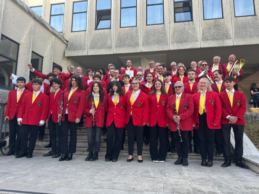 La banda musicale Città di Spoleto ha partecipato per la prima volta nella sua storia recente a un concorso bandistico nazionale, ottenendo un ottimo secondo posto al «Bacchetta d’oro» di Frosinone, nella categoria riservata ai gruppi emergenti. Il Concorso, che per due giorni ha portato in Ciociaria tantissime realtà musicali provenienti da ogni parte d’Italia, si è svolto sabato nell’auditorium Daniele Paris del Conservatorio statale Licinio Refice. La Banda di Spoleto, diretta dal Maestro Lorenzo Rosati, si è esibita con un organico di 51 elementi, eseguendo un brano d’obbligo, uno a libera scelta e una marcia. “La nostra – ha detto il presidente Matteo Filippi – è una banda in cammino e ha intrapreso un percorso di grande crescita artistica e culturale . È la prima volta che partecipiamo a un concorso di livello nazionale e prestigioso come «La Bacchetta d’oro»: ci è sembrata l’occasione giusta per valorizzare i tanti ragazzi presenti in questo momento nella nostra associazione, senza escludere dallo studio i membri più grandi e anziani. Ci siamo presentati con un gruppo eterogeneo, compatto e coeso e questo è stato premiato da un secondo posto che è ottimo e che rappresenta per noi un punto di partenza davvero stimolante. La nostra speranza è quella di trovare maggiori risorse per proseguire questo cammino: ci crediamo tantissimo e siamo convinti che una banda che porta con grande orgoglio il nome di Spoleto possa puntare ad affermarsi anche in ambito extra regionale. Voglio ringraziare tutti i musicisti per lo sforzo profuso in questi mesi e che è stato ripagato da un bel successo. Contiamo molto anche nella vicinanza di tutta la città: ne abbiamo bisogno per affrontare sempre nuove sfide. Per questo avvieremo a breve una massiccia campagna di tesseramento, confidando in una buona risposta da parte di tutti».