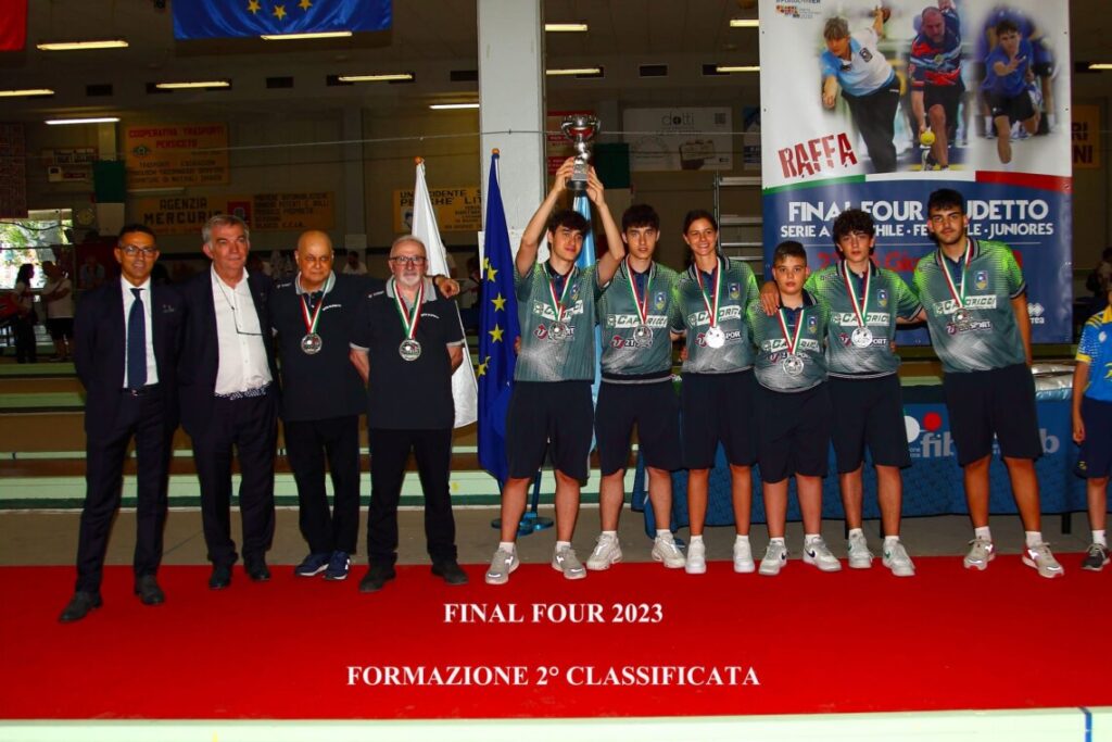 É arrivata a un passo dalla conquista dello scudetto juniores, l’associazione sportiva dilettantistica Bocciofila Città di Spoleto. Nei giorni scorsi la compagine spoletina ha partecipato alle Final Four di San Giovanni in Persiceto (BO), dove si sono svolte le finali dei campionati a squadre più importanti della specialità Raffa, confrontandosi con le squadre di Vigasio Verona, Canottieri Flora Cremona e Bocciofila Kennedy Nola.