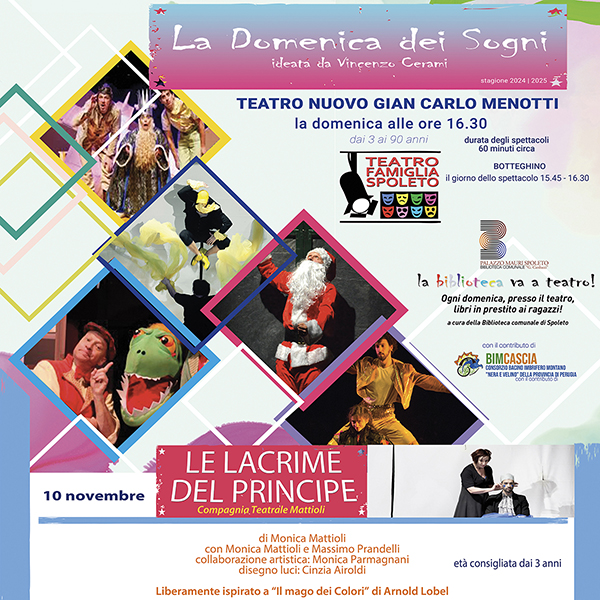 Nuovo appuntamento al Teatro Nuovo “Gian Carlo Menotti” per La domenica dei sogni, la rassegna di teatro famiglia ideata da Vincenzo Cerami per promuovere l’amore per il teatro tra le giovani generazioni.