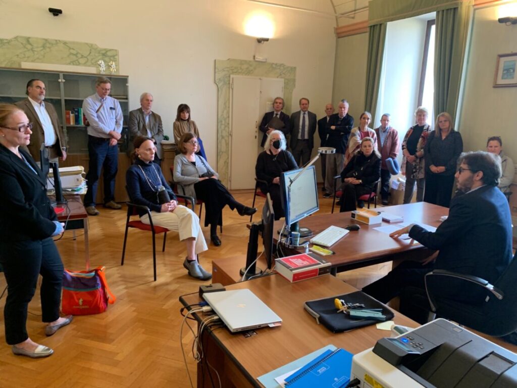 Dapprima un incontro con il Presidente del Tribunale Silvio Magrini Alunno, e con un discorso di benvenuto in inglese della Dott.ssa Michela Petrini per la Procura della Repubblica.