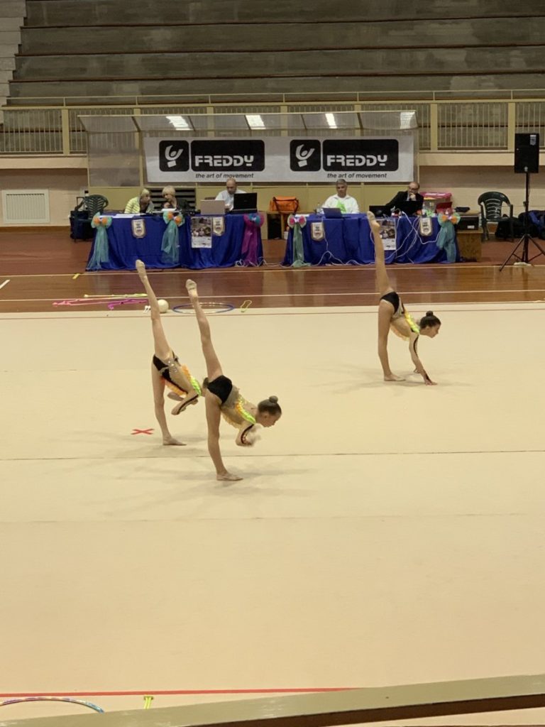 Nella categoria Gold 1, (Lavinia Baldassini, Angelica Fioroni, Eleonora Restani) gara che ha sempre dato belle soddisfazioni al sodalizio spoletino, avrà in questa stagione un cammino più difficile, la dimostrazione anche a Pisa con la squadra che ha totalizzato punti 39,150, raggiungendo la 7^ posizione, effettuando qualche errore di troppo nella gara in successione 7,700 e alcune imprecisioni nell’esercizio individuale 9,00, buon inizio invece al collettivo con punti 11,400 e buona anche l’ esecuzione della coppia con palla e fune, 11,050 il totale. Anche per loro comunque appuntamento alla Finale Nazionale di Forlì.