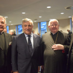 Nel pomeriggio di mercoledì 9 marzo la Fiaccola è stata accolta nella sede del Parlamento Europeo Antonio Tajani. Un gesto molto significativo: il messaggio di pace e di dialogo del Santo Patrono d’Europa nella sede del Parlamento proprio nell’anno in cui si celebra il sessantesimo anniversario della forma del Trattato di Roma che istituisce la Comunità Economica Europea. Alla cerimonia erano presenti, oltre alla delegazione delle terre di S. Benedetto, alcuni parlamentari europei italiani e l’arcivescovo Alain Lebeaupin Nunzio Apostolico, cioè ambasciatore della Santa Sede, presso l’Unione europea. Il presidente Tajani nel suo intervento, dopo aver ribadito che il 24 marzo prossimo a Norcia ci sarà l’incontro dei Presidenti dei gruppi politici dell’Europarlamento e dell’Ufficio di presidenza, ha voluto ricordare il terremoto che ha colpito l’Italia centrale e Norcia in particolare: «Le prove che la città natale di S. Benedetto – ha affermato – non sono finite. Dopo la distruzione, c’è la ricostruzione. Che non è mai facile. L’Europa in questo frangente c’è. È vicina ai suoi cittadini». Non è mancato poi un accenno all’attualità: «S. Benedetto – ha affermato Tajani – è un faro per noi europei. E oggi questo faro è ancora più luminoso perché deve indicarci la strada mentre il terrorismo non è ancora sconfitto del tutto, il dialogo sembra interrotto in molti luoghi del mondo devastati dalla guerra così come in alcuni territori europei che sentono più forte il bisogno di una realtà che cambia, di migrazioni potenti, di incomprensioni e conflitti che hanno alimentato i populismi. La Regola di S. Benedetto ci riporta alle radici stesse della nostra storia e della nostra civiltà, quelle alle quali dobbiamo attingere nei momenti più delicati per ritrovare le ragioni del percorso verso il completamento della integrazione europea». Il Nunzio Apostolico Lebeaupin, invece, ha invitato gli organizzatori a fare della Fiaccola di S. Benedetto un percorso di salvaguardia, e quindi di promozione, dell’identità europea e della solidarietà che ha sempre caratterizzato il Vecchio Continente e che oggi si sta lentamente perdendo.
