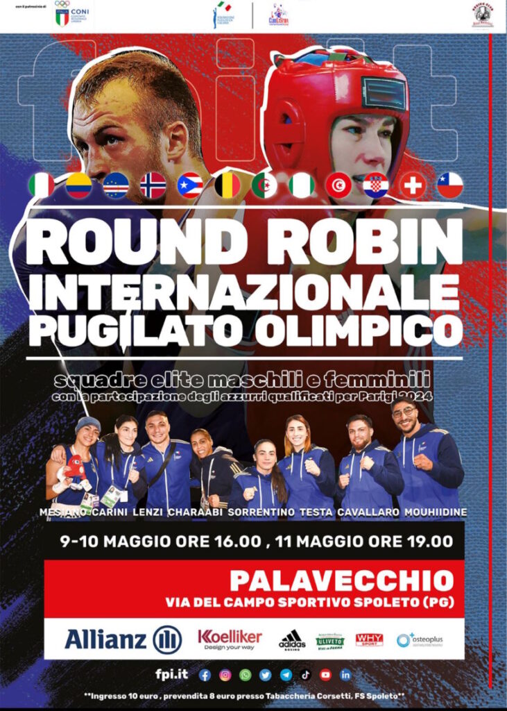 L’ASD Boxing Club Spoleto Diego Bartolini è orgogliosa di organizzare, in collaborazione con la Federazione Pugilistica Italiana e la Delegazione Regionale Umbra, un evento unico di Boxe internazionale con i principali protagonisti delle prossime Olimpiadi di Parigi; saranno infatti presenti gli atleti e le atlete della Nazionale italiana qualificati per le Olimpiadi (tra loro ricordiamo atleti del calibro di Mesiano, Carini, Lenzi, Chaarabi, Sorrentino, Testa, Cavallaro, Mouhidine) e di ben 11 rappresentative nazionali anche loro che saranno presenti a Parigi: Cile, Colombia, Svizzera, Norvegia, Puertorico, Algeria, Tunisia, Belgio, Nigeria, Capo Verde e Croazia.