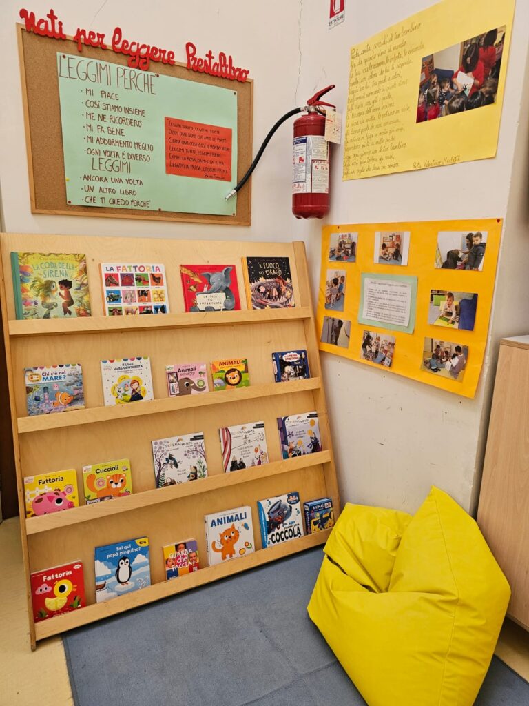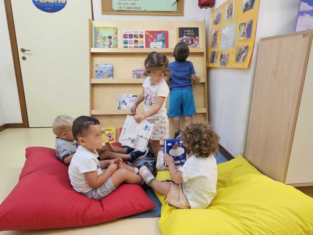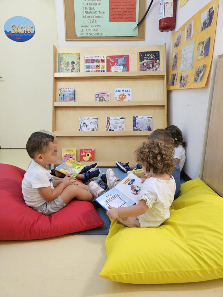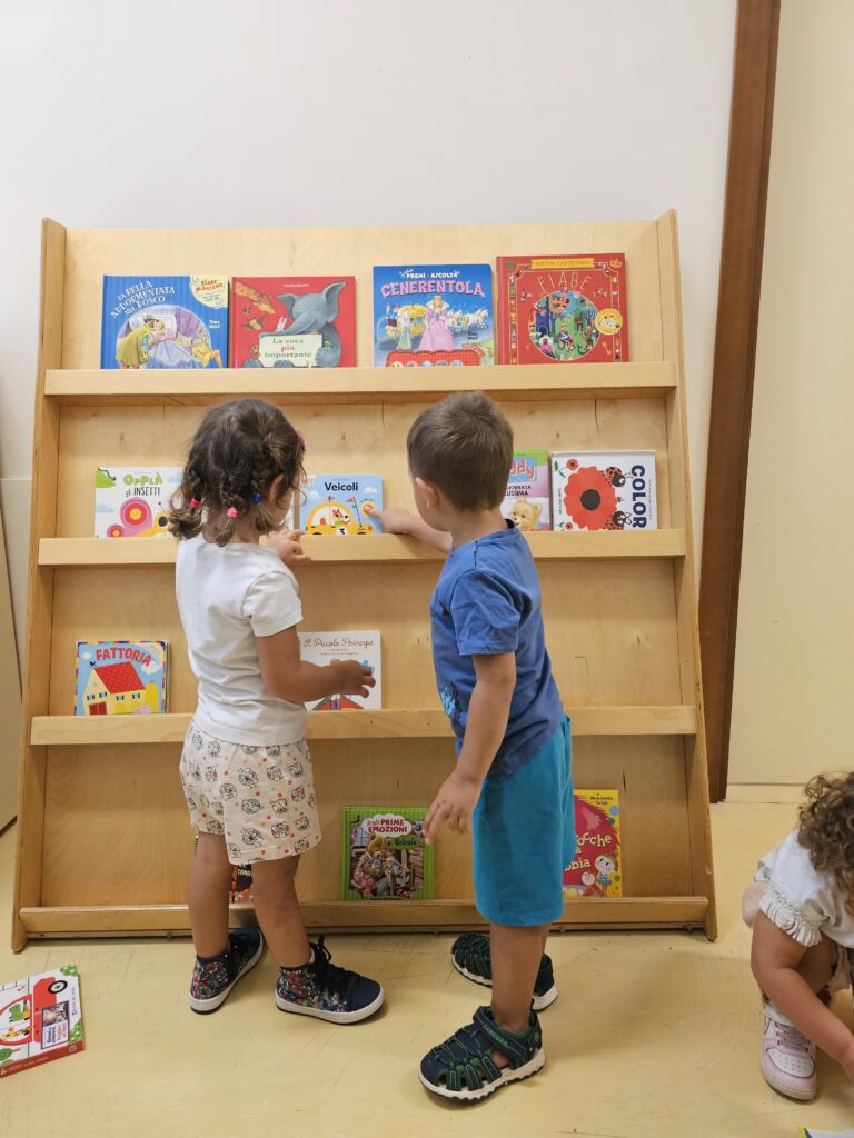 Grazie alla donazione sono stati allestiti tre nuovi scaffali negli angoli-lettura, tutti a misura di bambino, che verranno utilizzati per varie attività: “Prestalibro”, per la lettura condivisa tra genitori e bambini (ogni venerdì il bambino con un genitore sceglie un libricino per una lettura a casa); “Narrami una storia”, attività di lettura ad alta voce da parte delle educatrici; “Sto leggendo…”, momenti di relax dove ogni bambino si sceglie un libro e si narra da solo la storia che ha sentito in altri momenti di lettura condivisa.