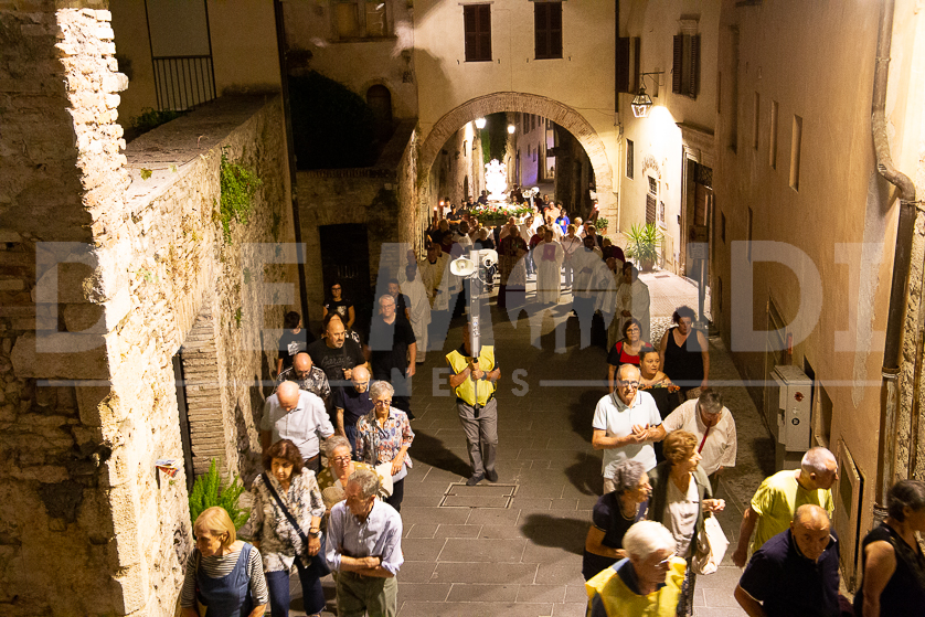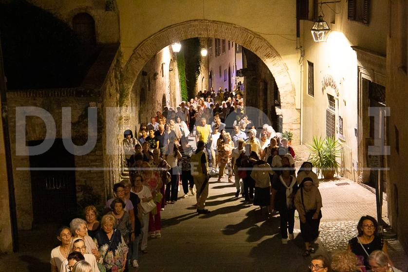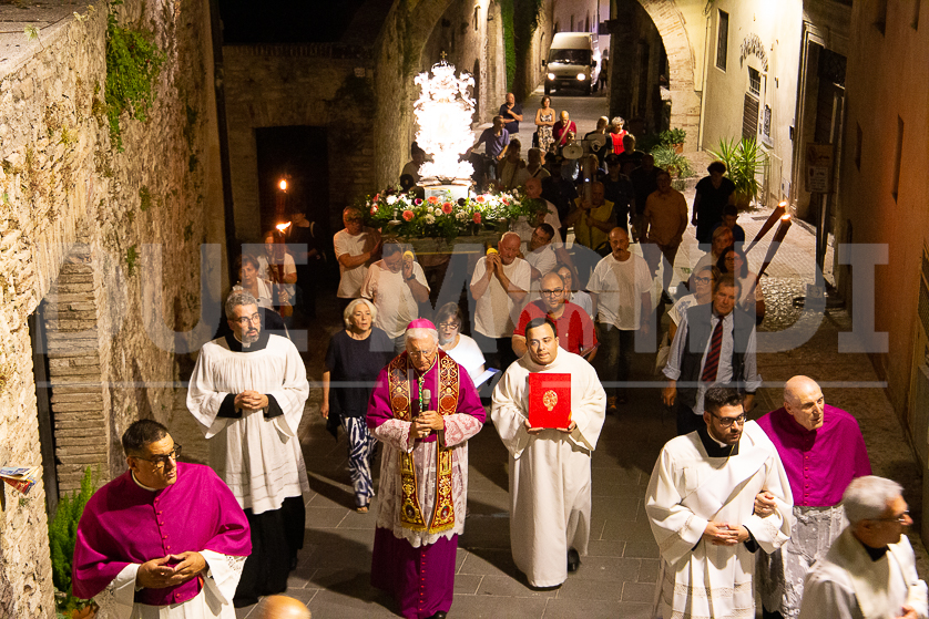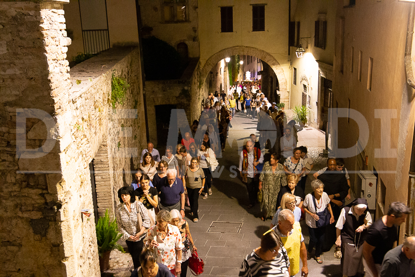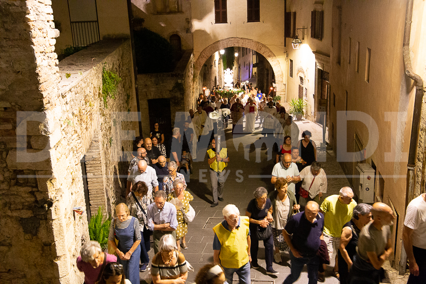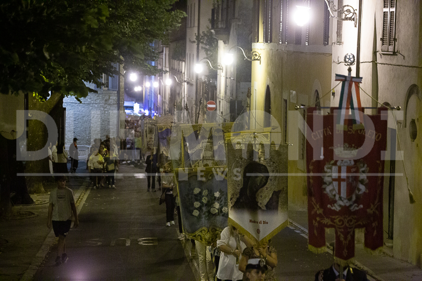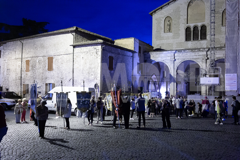 Arcivescovo e preti, religiosi e religiose, amministratori e forze dell’ordine, giovani e anziani, famiglie e bambini hanno percorso il centro storico della Città (dalla chiesa di S. Gregorio al Duomo) implorando su di essa e sulla Diocesi intera il sorriso materno e la tenera benedizione di colei che è ammirata come Madre di Dio e Madre della Chiesa. Il pensiero e la preghiera dei presenti sono andati a quanti sono segnati dalla malattia e dalla sofferenza, alle famiglie lacerate da discordia e violenza, agli anziani soli, a quanti sono segnati dalla piaga della povertà. Ma soprattutto la preghiera si è fatta implorazione di pace. Spoleto non è estranea al grido di sofferenza che sala dai bambini di Gaza e di Kiev, all’attesa di cibo che umilia le popolazioni vittime della guerra, allo strazio di chi vede perire mariti e figli sui campi di battaglia, all’anelito di dignità e libertà che abita il cuore degli oppressi, alla ricerca di giustizia e di pace che spinge a lasciare la propria terra e attraversare il mare, alla grave responsabilità dei capi delle Nazioni chiamati a costruire ponti di dialogo e riconciliazione, al bisogno irrinunciabile di speranza che abita e tormenta il cuore dell’uomo. Alla processione, scandita dalle decine del rosario e da canti mariani, hanno preso parte anche numerose associazioni di volontariato con i loro stendardi; c’era il Gonfalone della Città e l’amministrazione comunale era rappresentata dal vice sindaco Danilo Chiodetti e dall’assessore Federico Cesaretti.