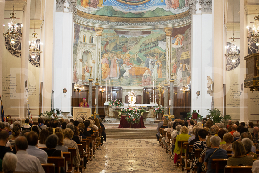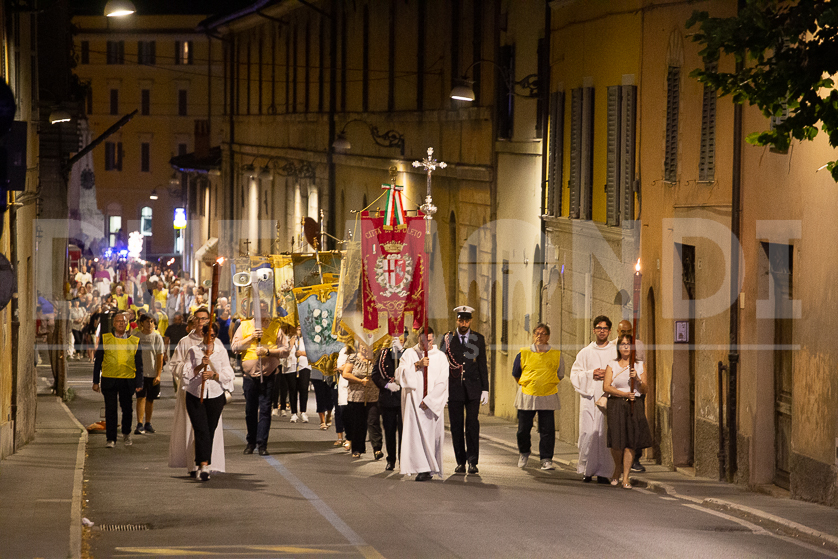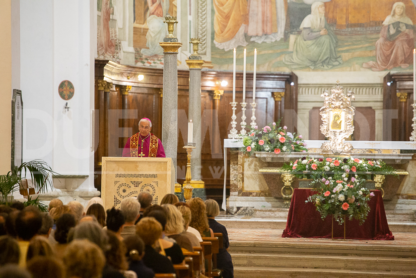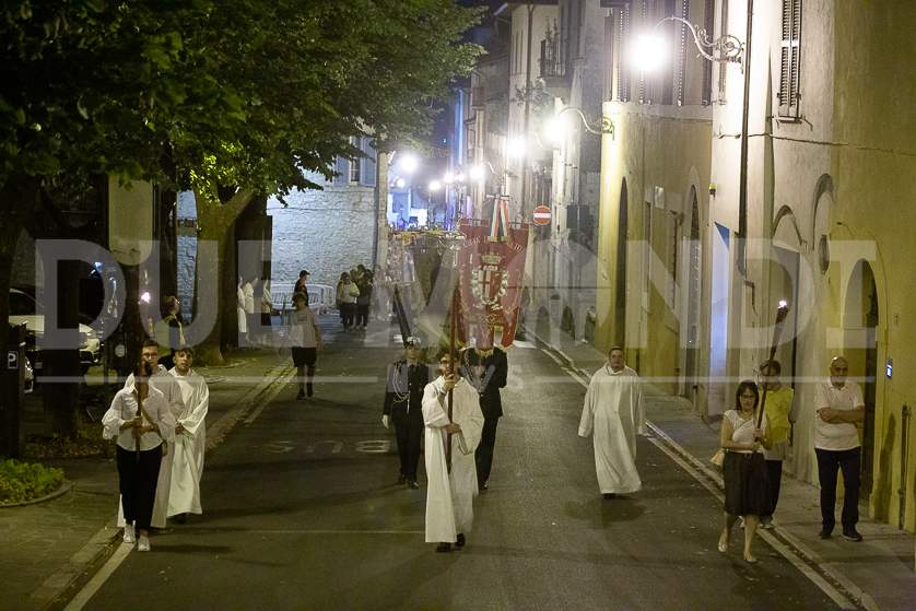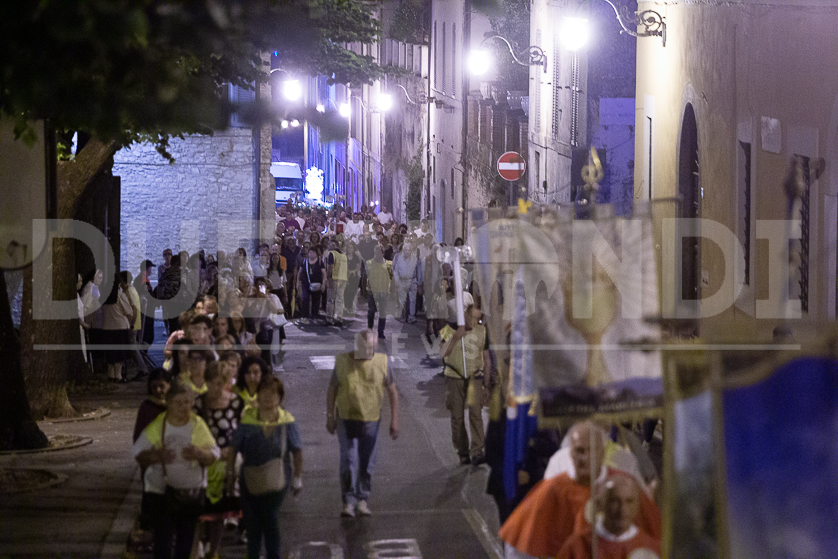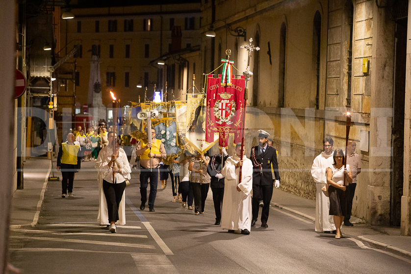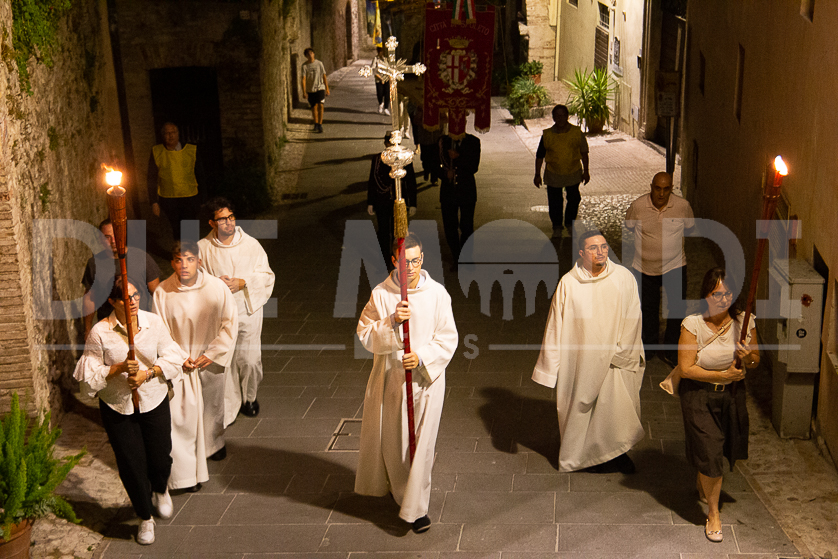Arcivescovo e preti, religiosi e religiose, amministratori e forze dell’ordine, giovani e anziani, famiglie e bambini hanno percorso il centro storico della Città (dalla chiesa di S. Gregorio al Duomo) implorando su di essa e sulla Diocesi intera il sorriso materno e la tenera benedizione di colei che è ammirata come Madre di Dio e Madre della Chiesa. Il pensiero e la preghiera dei presenti sono andati a quanti sono segnati dalla malattia e dalla sofferenza, alle famiglie lacerate da discordia e violenza, agli anziani soli, a quanti sono segnati dalla piaga della povertà. Ma soprattutto la preghiera si è fatta implorazione di pace. Spoleto non è estranea al grido di sofferenza che sala dai bambini di Gaza e di Kiev, all’attesa di cibo che umilia le popolazioni vittime della guerra, allo strazio di chi vede perire mariti e figli sui campi di battaglia, all’anelito di dignità e libertà che abita il cuore degli oppressi, alla ricerca di giustizia e di pace che spinge a lasciare la propria terra e attraversare il mare, alla grave responsabilità dei capi delle Nazioni chiamati a costruire ponti di dialogo e riconciliazione, al bisogno irrinunciabile di speranza che abita e tormenta il cuore dell’uomo. Alla processione, scandita dalle decine del rosario e da canti mariani, hanno preso parte anche numerose associazioni di volontariato con i loro stendardi; c’era il Gonfalone della Città e l’amministrazione comunale era rappresentata dal vice sindaco Danilo Chiodetti e dall’assessore Federico Cesaretti.