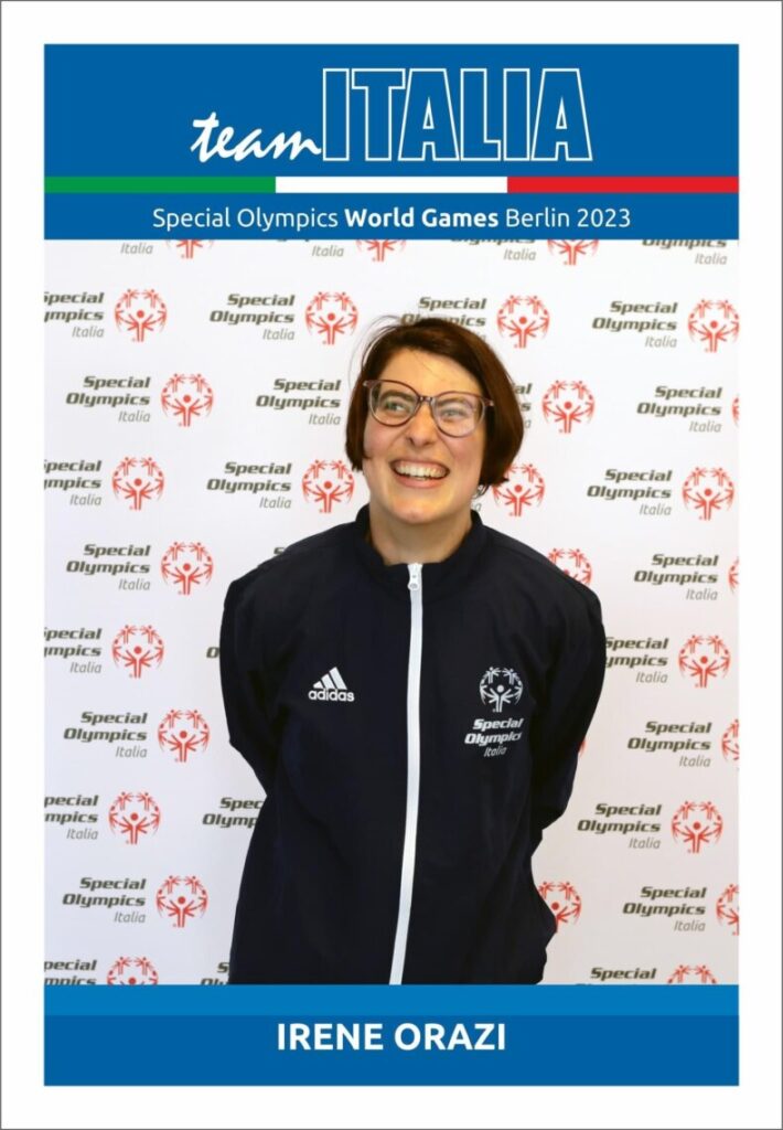 Irene da anni si dedica all’atletica con il massimo dell’impegno dando fondo a tutte le sue energie a ogni singolo allenamento. Il suo talento e la sua determinazione l’hanno portata a meritarsi l’agognata convocazione per difendere i colori italiani in Germania, “lottando con tutte le sue forze”, come recita il motto degli atleti Special Olympics e che Irene ha fatto suo.