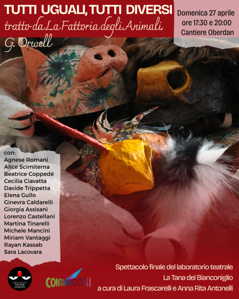 “Tutti uguali, tutti diversi”, tratto dal celeberrimo “La fattoria degli animali” di G. Orwell, è il risultato del laboratorio teatrale per ragazzi “La Tana del Bianconiglio – spazio di libera espressione”, curato da Laura Frascarelli e Anna Rita Antonelli.