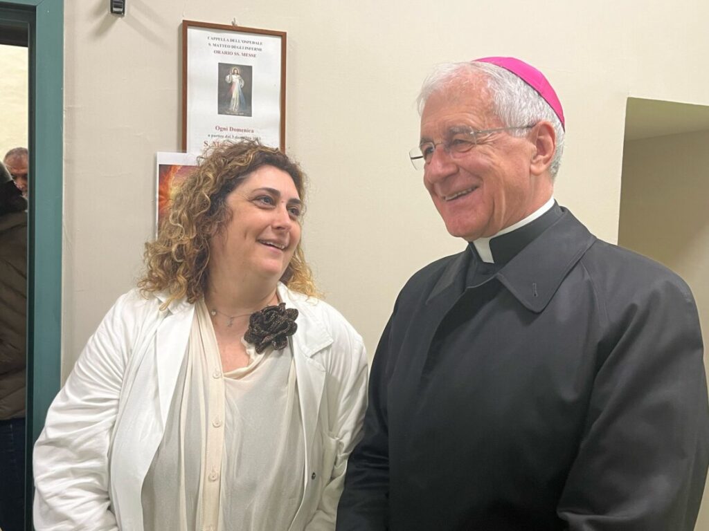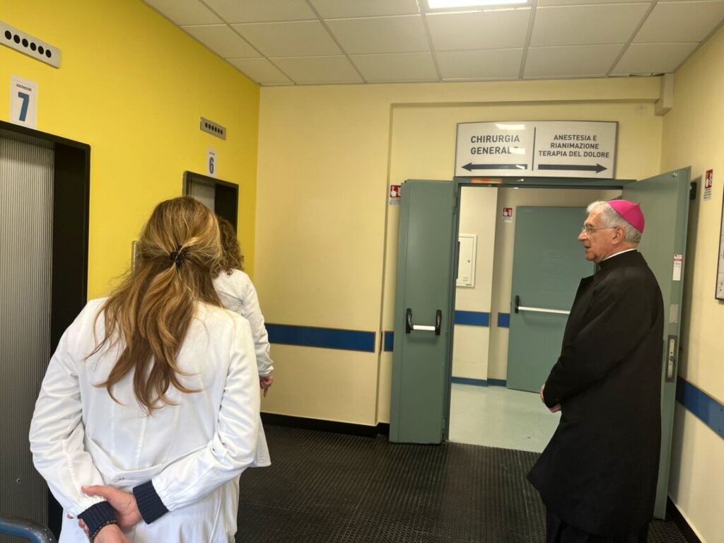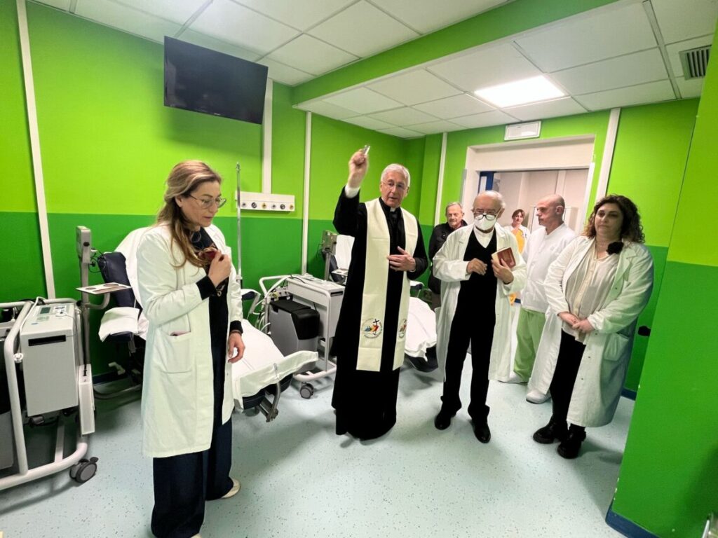 L’Arcivescovo al termine della Messa ha visitato tutti i reparti, portando parole di speranza ai degenti e salutando tutto il personale in servizio; ha benedetto il nuovo spazio dedicato all’accoglienza dei turisti dializzati presenti nel territorio e i due quadri all’ingresso della struttura e raffiguranti S. Ponziano e S. Matteo, protettori del Nosocomio, donati dall’Associazione “Giovanni Parenzi” presieduta da Piero Meduri.