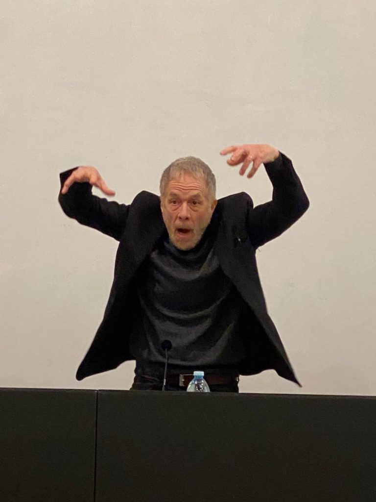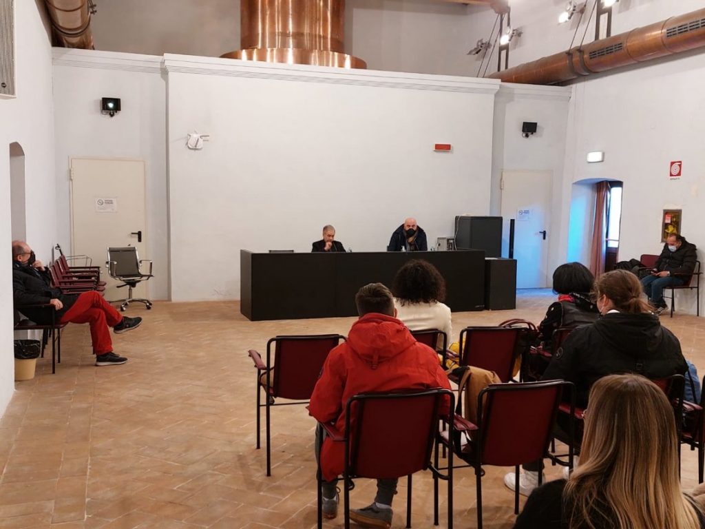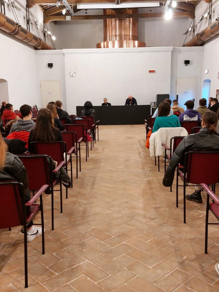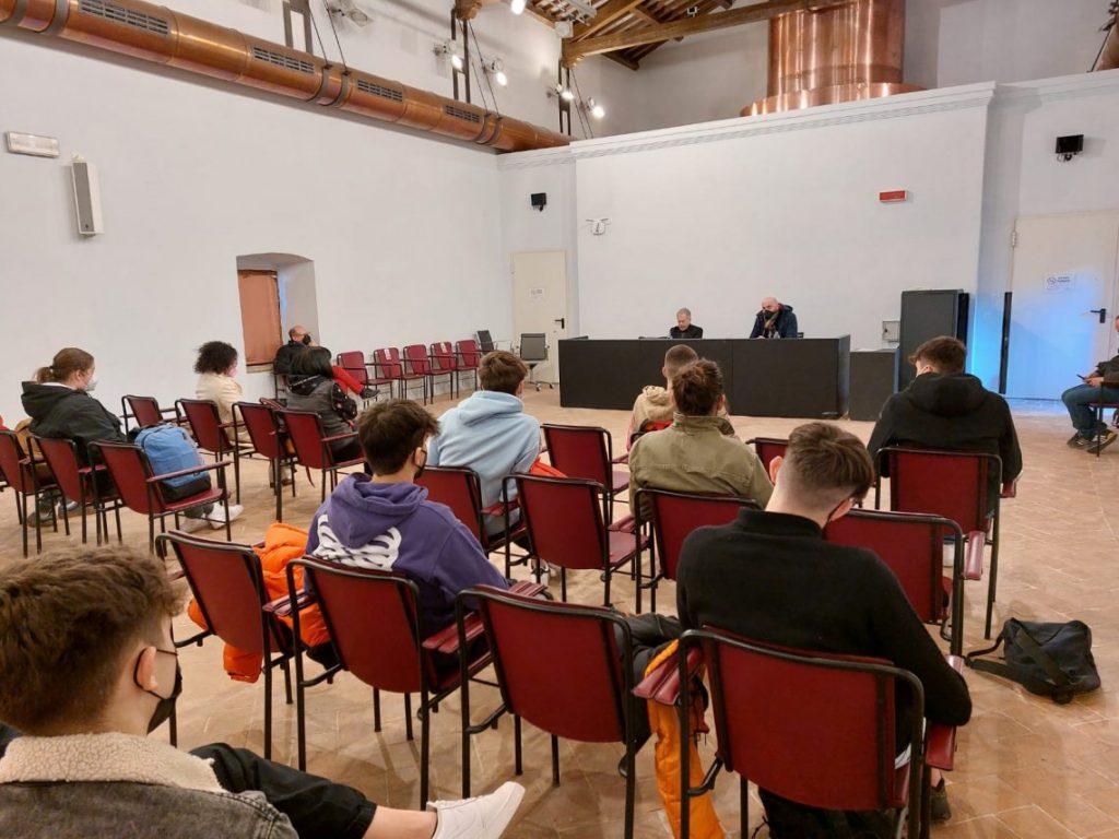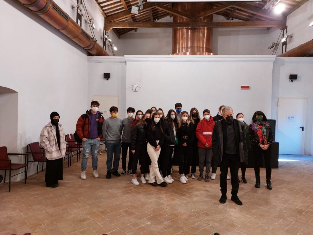 Questa mattina Gabriele Lavia ha incontrato gli studenti di due classi terze del liceo classico e del liceo scientifico al Complesso Monumentale di San Nicolò, un’occasione per conoscere ed ascoltare la sua esperienza teatrale e il lavoro preparatorio che la compagnia sta effettuando in questi giorni al Teatro Nuovo Gian Carlo Menotti in vista dello spettacolo del 6 febbraio.