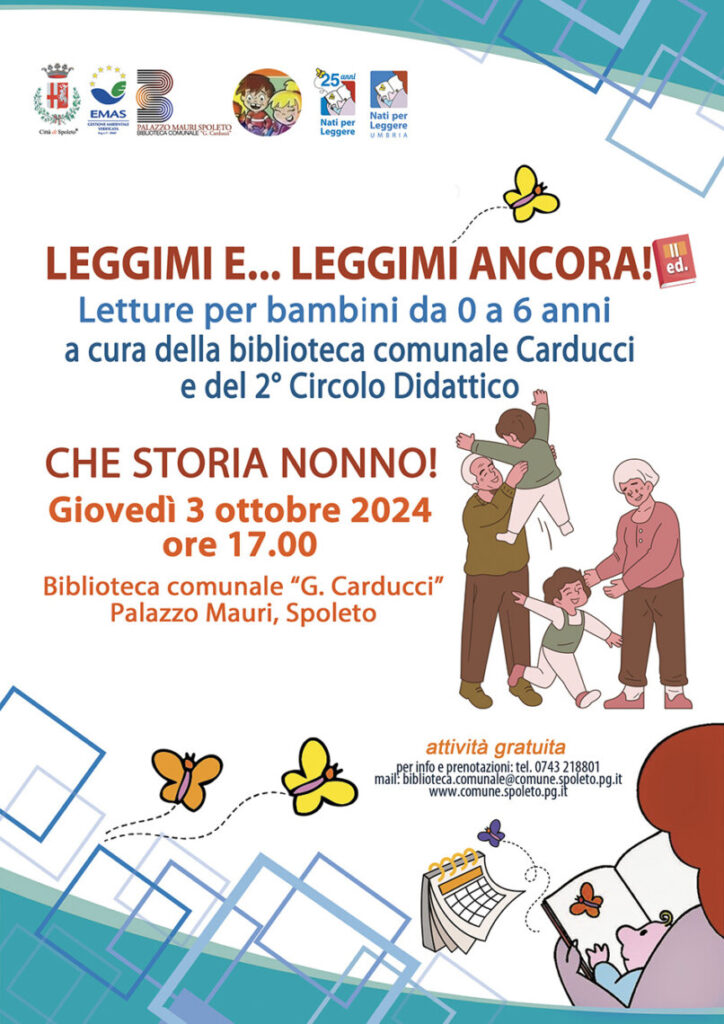 Giunta alla seconda edizione, l’iniziativa, organizzata dalla Biblioteca comunale “G. Carducci” e il II Circolo Didattico di Spoleto, partner del Patto locale della lettura 2021-2024, si articolerà in 8 date a partire dal prossimo 3 ottobre.