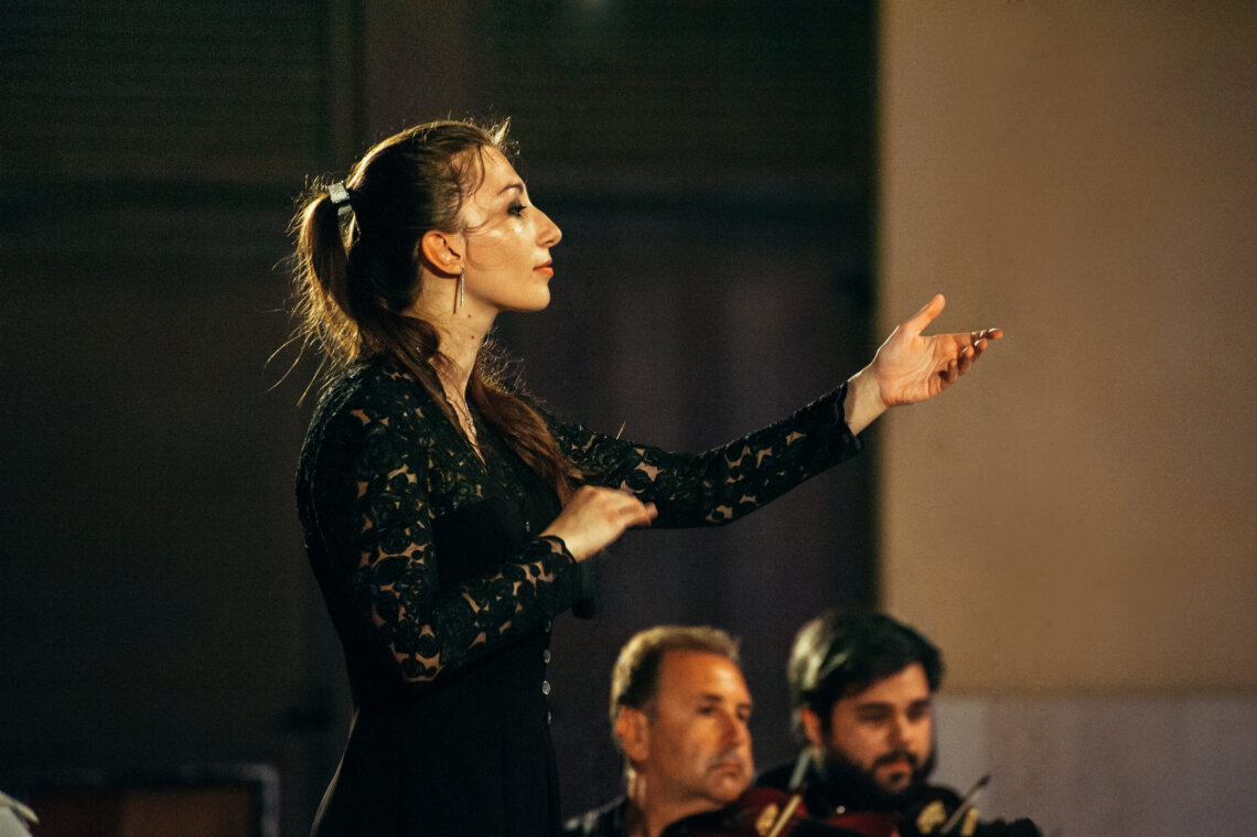 Per la prima volta nella storia dello Sperimentale, sale sul podio una direttrice d’orchestra, Mimma Campanale. Formatasi come pianista, cantante e compositrice, ha costruito un percorso artistico solido e articolato, che l’ha vista vincere concorsi nazionali ed europei e collaborare con nomi come Marco Angius, Salvatore Sciarrino, Arturo Tamayo. La sua presenza alla guida dell’ensemble – interamente composto da uomini – assume un valore significativo, in sintonia con lo spirito di Nanof, l’altro, che racconta la creatività come forma di espressione e libertà.