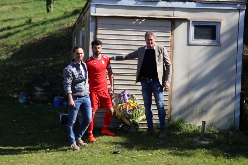 Successivamente, il capitano della squadra, Fabio Bianchi, ha deposto un mazzo di fiori sulla porta del magazzino che era la ‘seconda casa’ dell’indimenticabile Ennio.