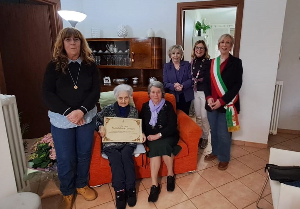 “Come sempre cerchiamo di condividere la gioia dei nostri concittadini che raggiungono un traguardo di vita così importante – sono state le parole della vicepresidente Coltorti – È stato un vero piacere portare gli auguri dell’amministrazione comunale e della città alla signora Maddalena, condividere con lei e con la figlia Annarita una giornata come questa”.