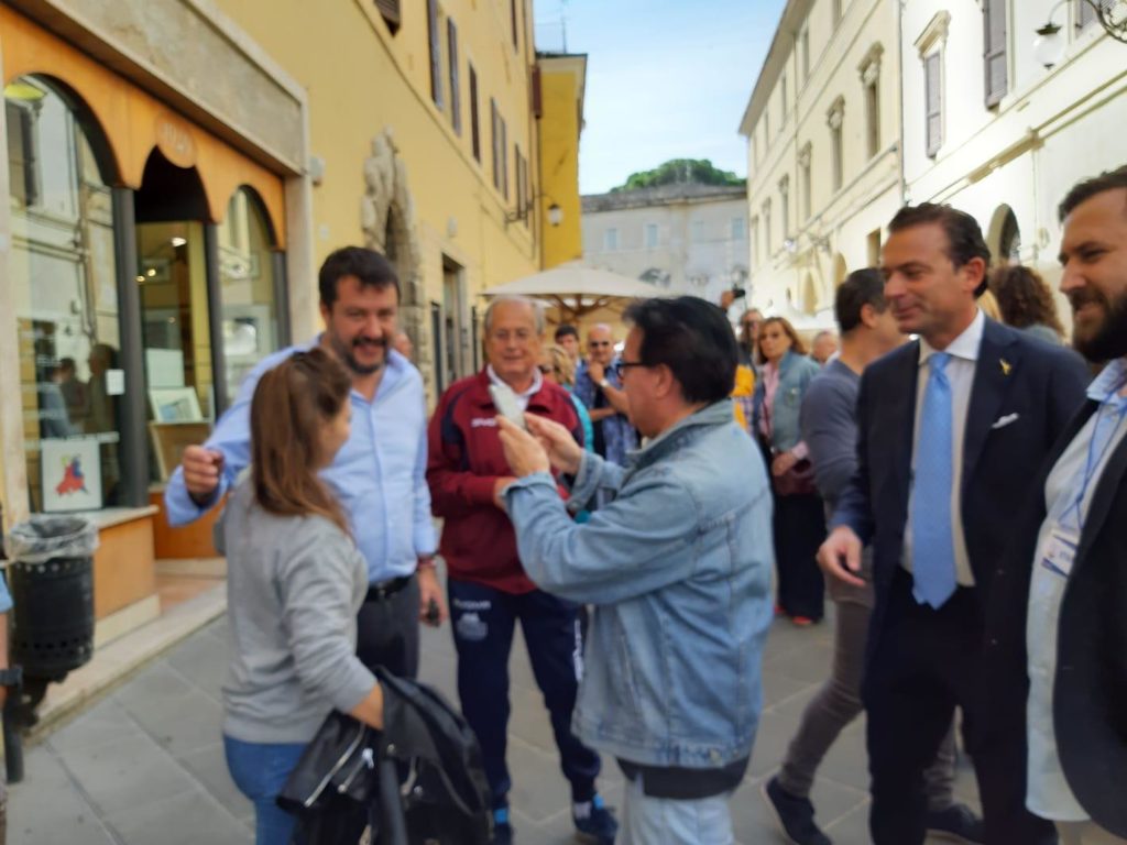 Questa mattina, domenica 13 ottobre, il leader del Carroccio ha invece girato a piedi per le vie di Spoleto, da corso Mazzini a piazza Duomo fino a piazza Garibaldi, concedendosi – come sua abitudine – a scambi di opinione, battute e dichiarazioni programmatiche. Il numero uno della Lega ha, infine, concluso la sua visita a Spoleto presso un ristorante alle porte della città, dove si è trattenuto a pranzo insieme a oltre 300 fra militanti e simpatizzanti, ribadendo ancora una volta – con i fatti – il ruolo da protagonista che la Lega rivendica in politica a livello nazionale e regionale, dove è accreditata per l’elezione di 6/7 consiglieri sui 12 complessivi di maggioranza. “Importante – le parole di Salvini – sarà non disperdere i voti e premiare chi proviene dal territorio e per questo territorio si impegna da anni”.