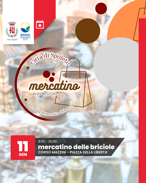 Corso Mazzini e Piazza della Libertà si preparano ad accogliere, domenica 11 gennaio, il consueto appuntamento della seconda domenica del mese con il Mercatino delle Briciole di Spoleto, dedicato al riuso, al collezionismo e ai piccoli tesori della creatività.