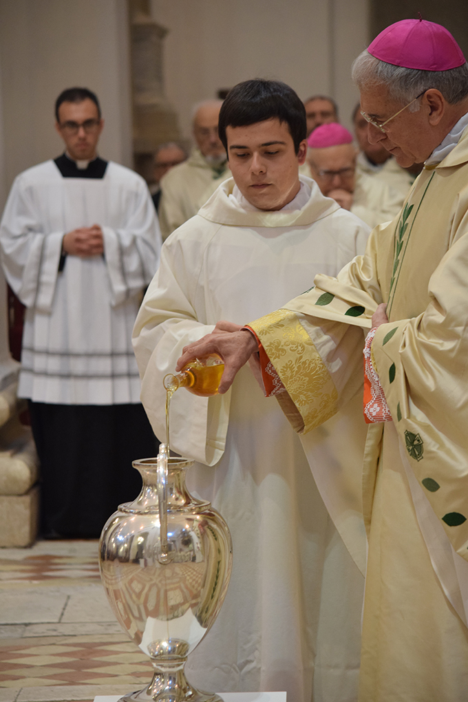 Consacrati gli Oli Santi. Col Crisma il 27 aprile prossimo mons. Boccardo ordinerà presbitero il giovane spoletino Pier Luigi Morlino