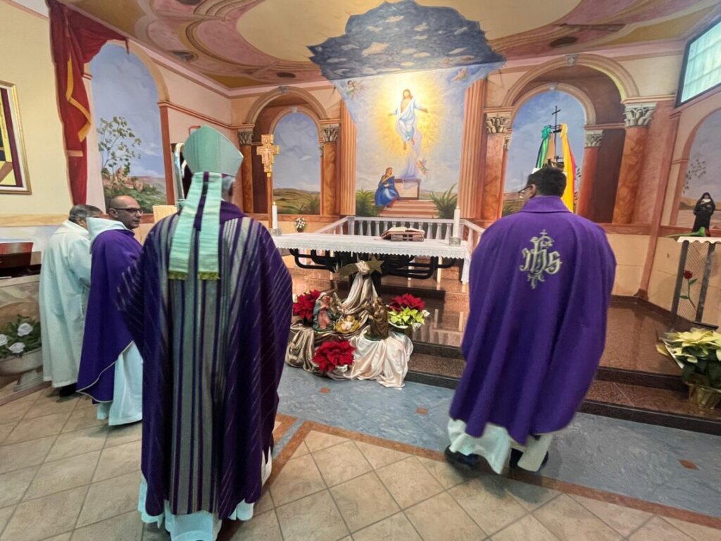 «Cari amici, questo territorio nel 2016 è stato violentemente ferito dal terremoto, che ha distrutto case, chiese, aziende e relazioni. Con forza però diciamo che le macerie non avranno l’ultima parola; anzi, sono lo strumento dal quale ripartire e recentemente lo abbiamo visto per la Basilica di S. Benedetto e per il rosone della chiesa abbaziale di S. Eutizio, ricostruiti proprio rimettendo insieme le macerie. E anche la vostra vita è colma di macerie. Non vanno buttate, né si possono cancellare: da esse, invece, dovete ripartire per ricostruire la vostra esistenza». Ha usato questo parallelismo l’arcivescovo di Spoleto-Norcia mons. Renato Boccardo per salutare i detenuti della Casa di Reclusione di Spoleto nella Messa che ha presieduto nel pomeriggio di sabato 20 dicembre, che ha segnato anche la conclusione del Giubileo della Speranza nel Penitenziario. L’apertura dell’Anno Giubilare nel carcere di Spoleto c’era stata sabato 4 gennaio 2025, sempre con una Messa presieduta dall’Arcivescovo. Durante l’anno sono stati organizzati vari momenti con i detenuti per riflettere sull’importanza della virtù teologale della speranza. Con il Presule hanno concelebrato il cappellano padre Marco Antonio Maria Uras, ofm, e il direttore della Caritas diocesana don Edoardo Rossi. Presente il direttore del Carcere Bernardina Di Mario, il comandante della Polizia Penitenziaria Pierpaolo Milanese, il consigliere regionale Donatella Tesei, volontari della Casa di Reclusione. La liturgia è stata animata da alcuni elementi della corale diocesana, guidati dal maestro Mauro Presazzi.