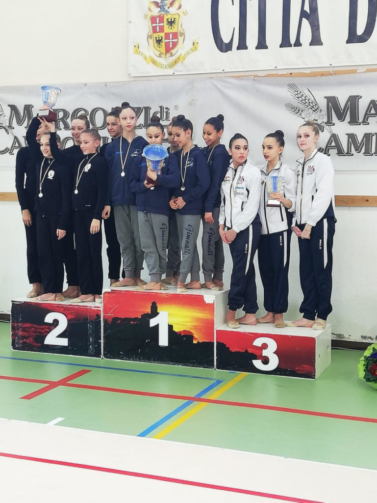 Inizia proprio Serafini alla fune, dove ottiene il punteggio di 13,250, buono, ma con una perdita importante che ne ha ridimensionato il risultato finale, anche il cerchio di Asia Fatigoni, pur ottenendo un buon 14,700, avrebbe potuto portare di più, l’emozione probabilmente ha tradito Camilla Quondam, che alle clavette non è andata oltre il 10,800, con cadute dell’attrezzo impreviste che ne hanno condizionato il punteggio finale, anche il nastro della Fatigoni ha avuto delle imprecisioni anche se con un punteggio discreto di 13,900.