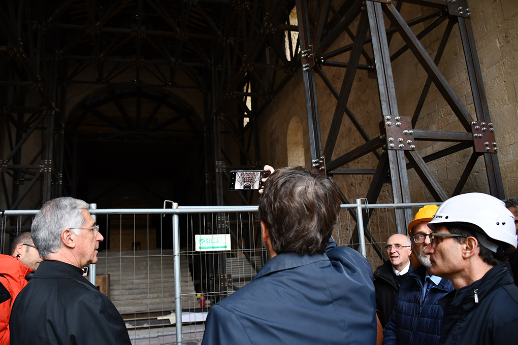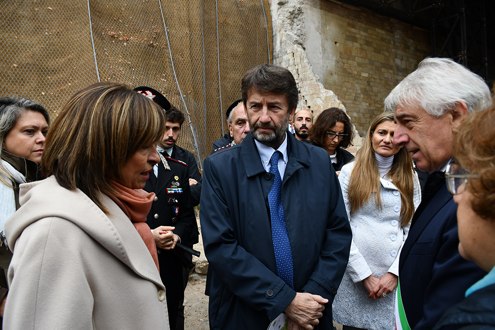 Visita del Ministro Franceschini e il “sogno” di Vescovo e Sindaco. Alla 9.45 è giunto a Norcia il ministro per i Beni e le Attività Culturali e il Turismo Dario Franceschini: accompagnato dalle autorità, dai progettisti e dalle maestranze ha visitato i cantieri della Basilica di S. Benedetto, scendendo anche nella cripta, e della Concattedrale di Santa Maria liberata dalle macerie in questo ultimo periodo e che ora dovrebbe essere dotata di una copertura. Al Ministro l’arcivescovo Boccardo e il sindaco Alemanno hanno accennato un piccolo “sogno”: poter celebrare la Messa di Natale tra ciò che resta di questa chiesa. Infine, il Ministro si è recato in visita alla chiesa di S. Salvatore a Campi di Norcia e poi all’Abbazia di S. Eutizio in Preci, dove è stato accolto dal parroco don Luciano Avenati e dal sindaco Massimo Messi.